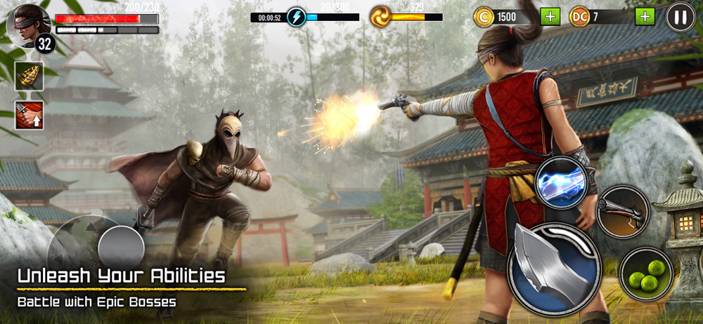 This role playing ninja game makes you play as a last shadow warrior who faces epic boss fights in the lands of tremendous breadth and beauty. Every enemy AI is different and requires a particular strategy to defeat them. Trained in the ways of legend shadow warrior, Ryuko's eventual aim is to play as brave shadow fighter, rescue your grandfather, and end the corruption.