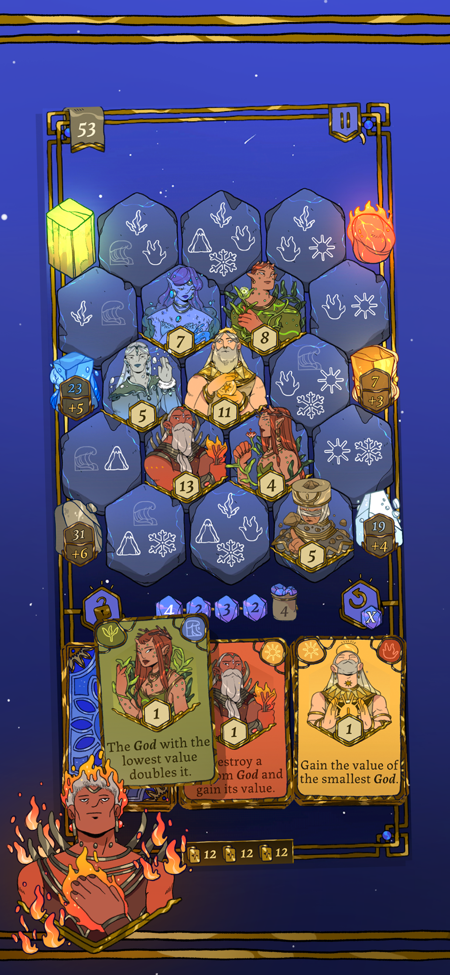 Geo Gods is a solo card game which combines card drafting with a simple tile placing mechanic.
