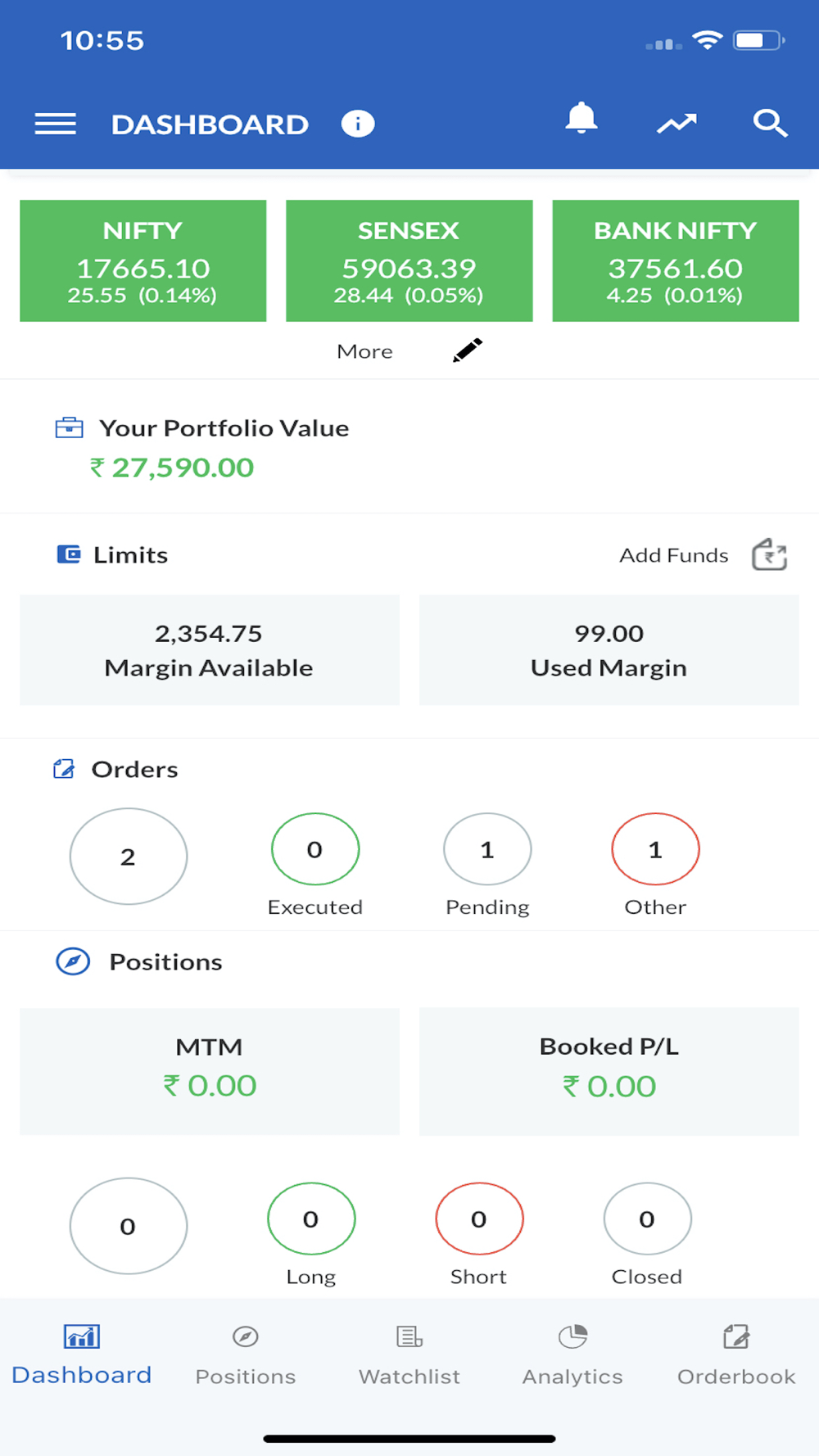 • View all orders- open, trigger pending, complete, rejected, AMO and cancelled orders