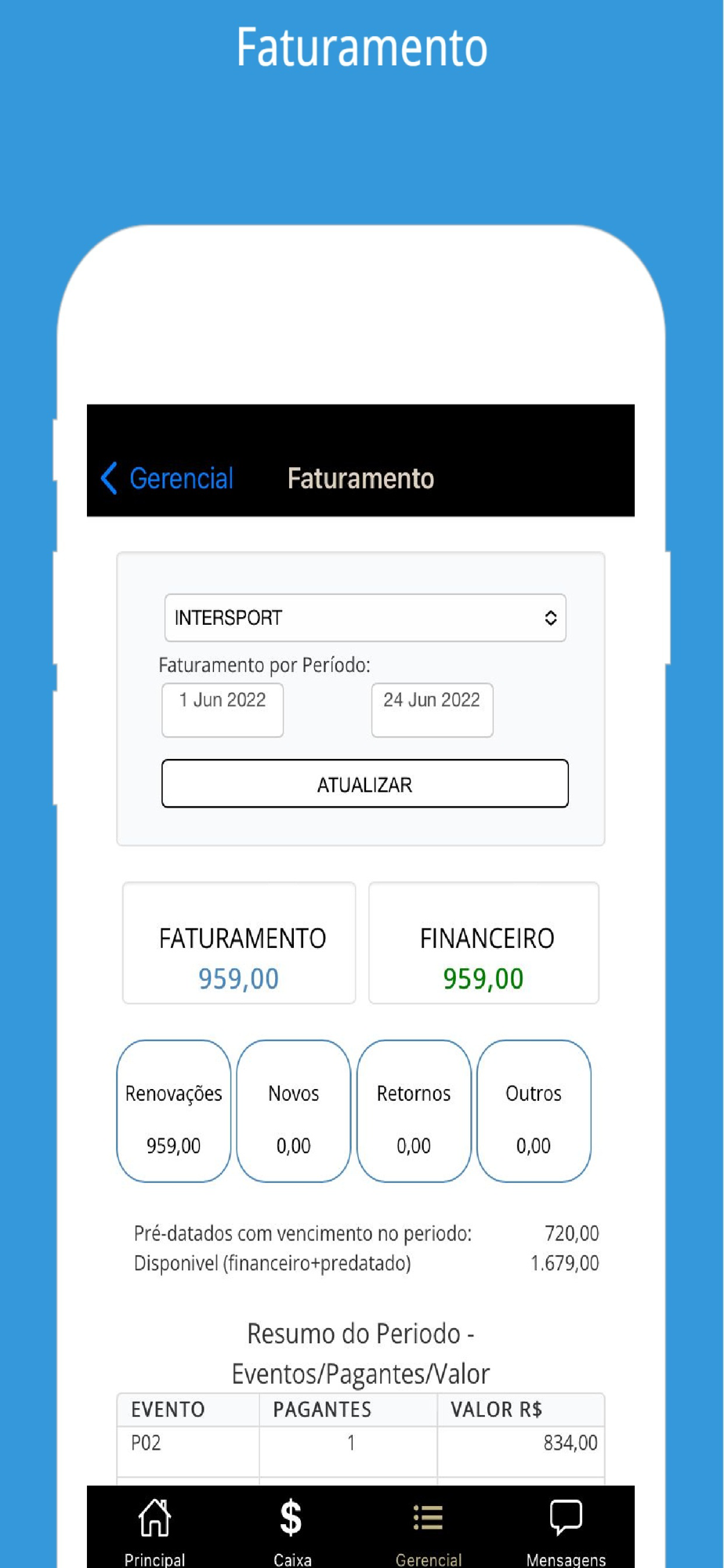 - Consulta de Faturamento e dados estatísticos do seu negócio por período;