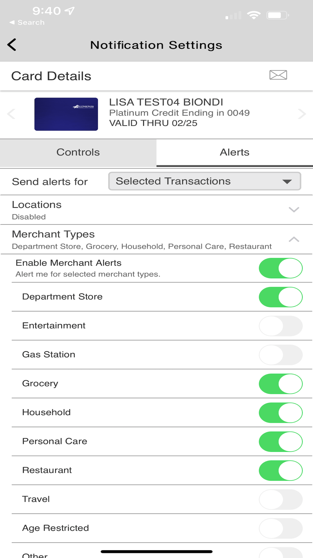 • Set alerts and controls on your US Postal Service FCU cards.