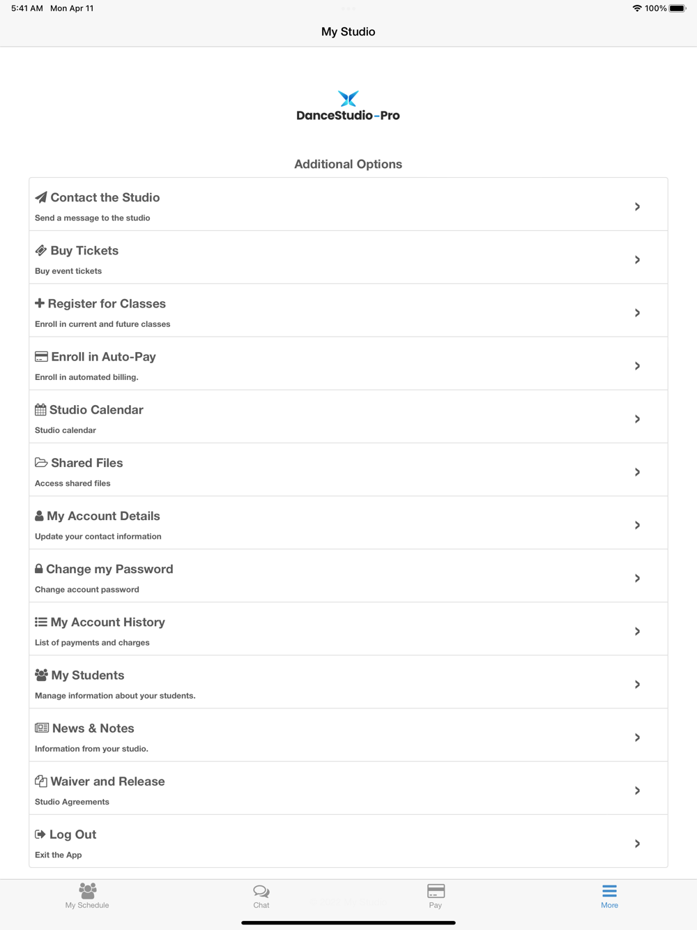 Access your studio's Customer Portal with an easy-to-use app! Powered by DanceStudio-Pro, this app gives you push notifications, so you don't miss a thing. Depending on your studio's enabled settings, you can: