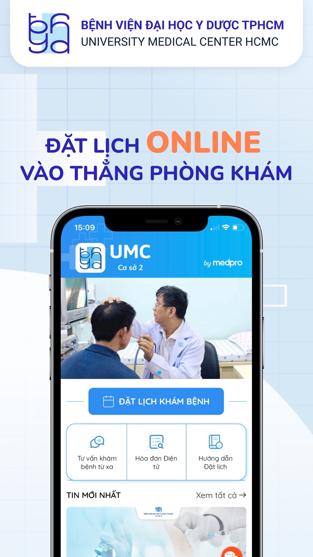 UMC2 – Đặt lịch khám bệnh là một phần mềm đăng ký khám bệnh trực tuyến tại Bệnh Viện Đại Học Y Dược Thành Phố Hồ Chí Minh Cơ sở 2. Thông qua ứng dụng UMC2 bệnh nhân có thể: Đăng ký khám bệnh, Thanh toán tiền khám, Nhận phiếu khám bệnh, Tạo hồ sơ bệnh nhân, Quản lý hồ sơ bệnh nhân, Quản lý phiếu khám bệnh, Tư vấn sàng lọc bệnh… hoàn toàn trực tuyến ở mọi lúc mọi nơi mà không cần phải đến bệnh viện để xếp hàng và chờ đợi.