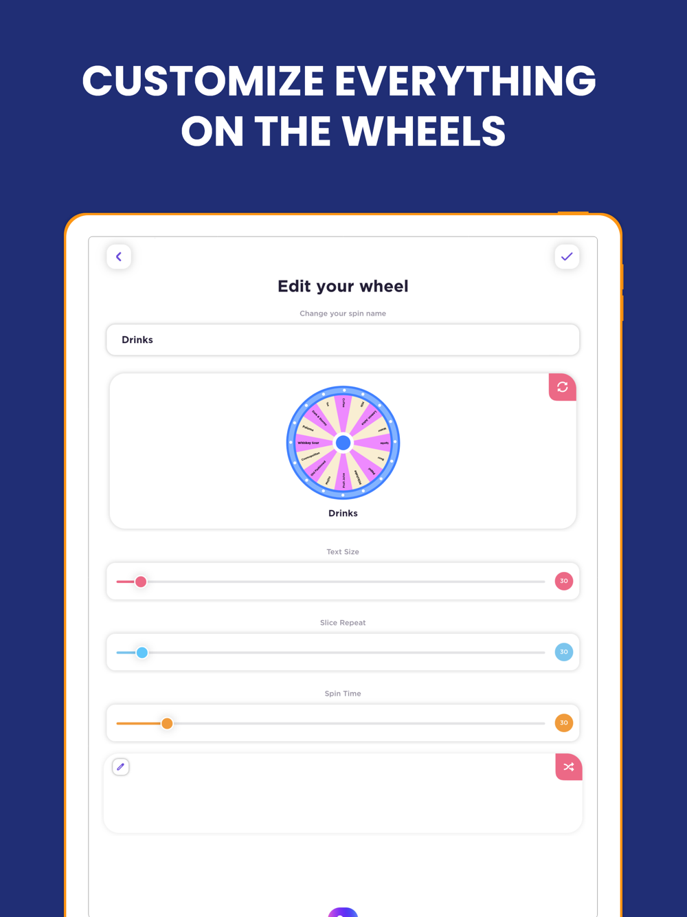 Put anything you want on the wheel and make unique raffle pickers, random name pickers to draw