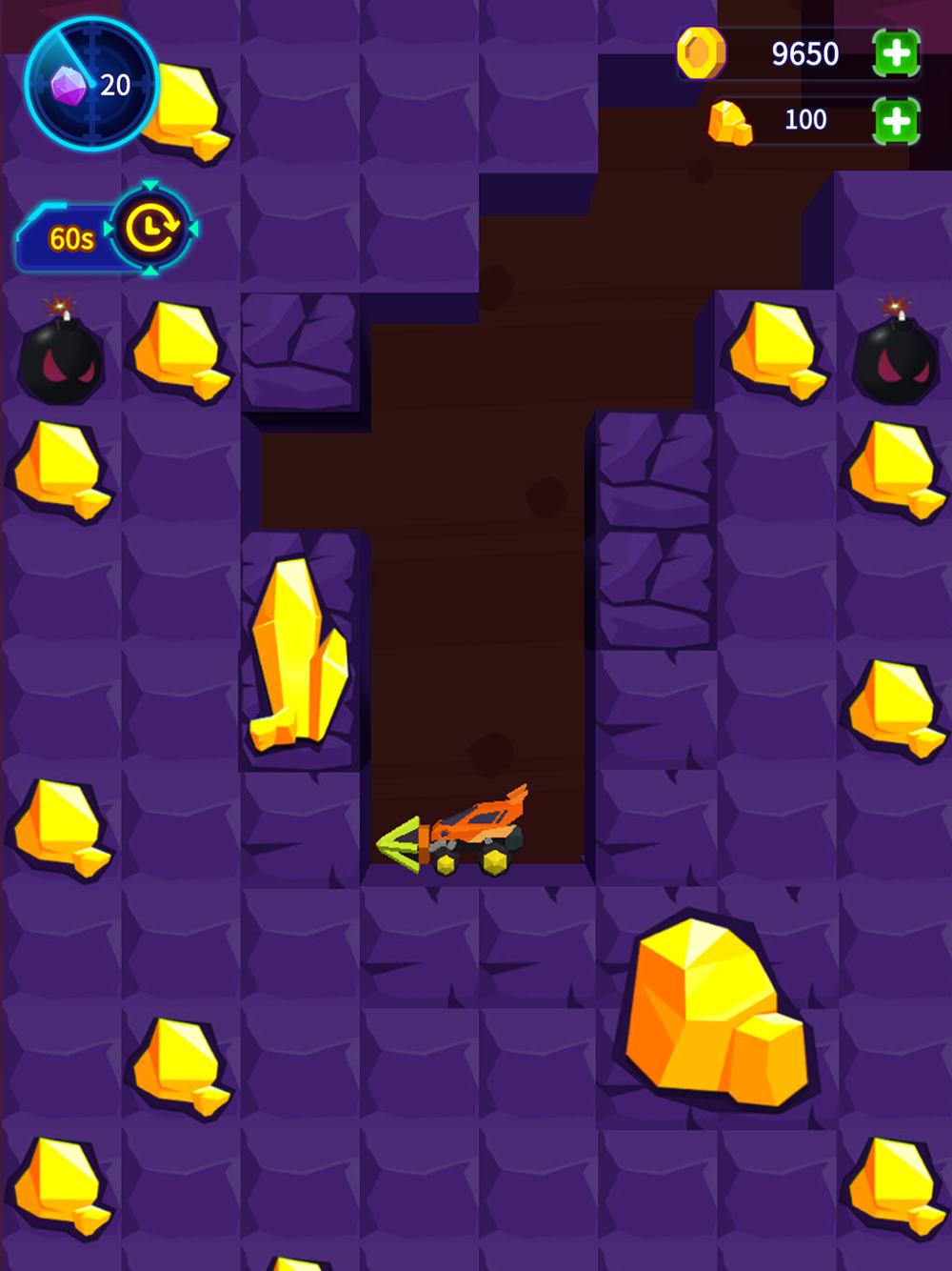 The operation is simple, just control your mining machine to dig to the gold nugget.
