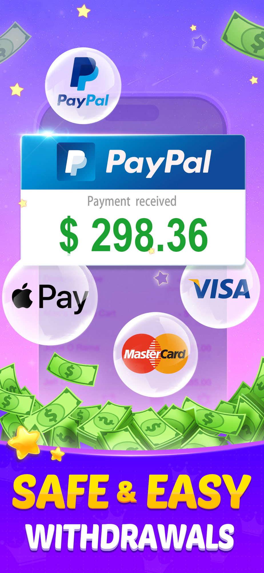 - Withdrawal via Paypal & Apple Pay 100% securely. Each tokens that can be redeemed. Make money without gambling.
