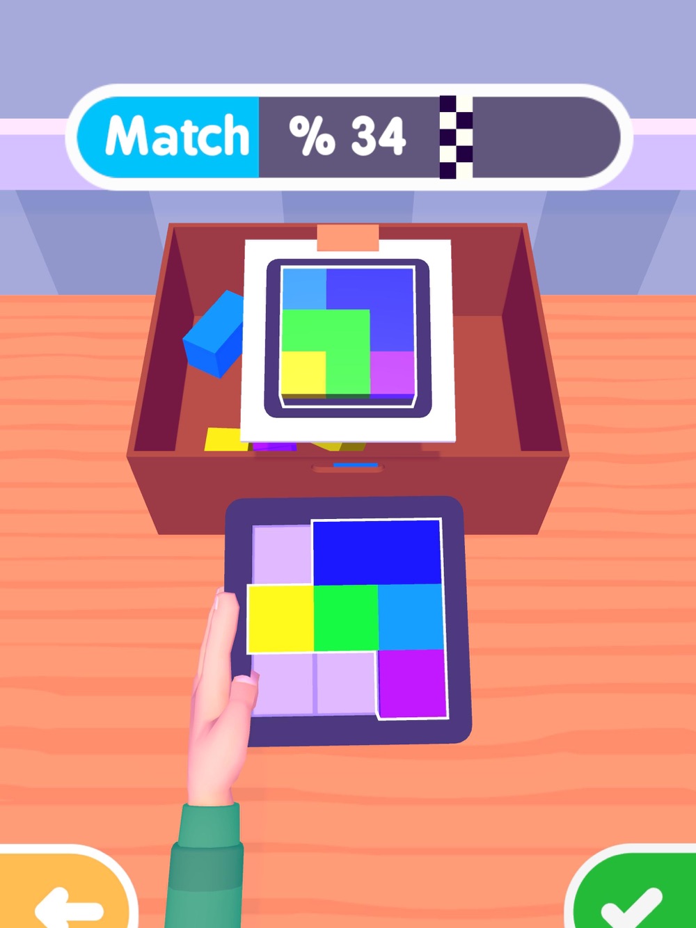 Tap and pick the bricks necessary to complete the puzzle. You can put them on top of each other.