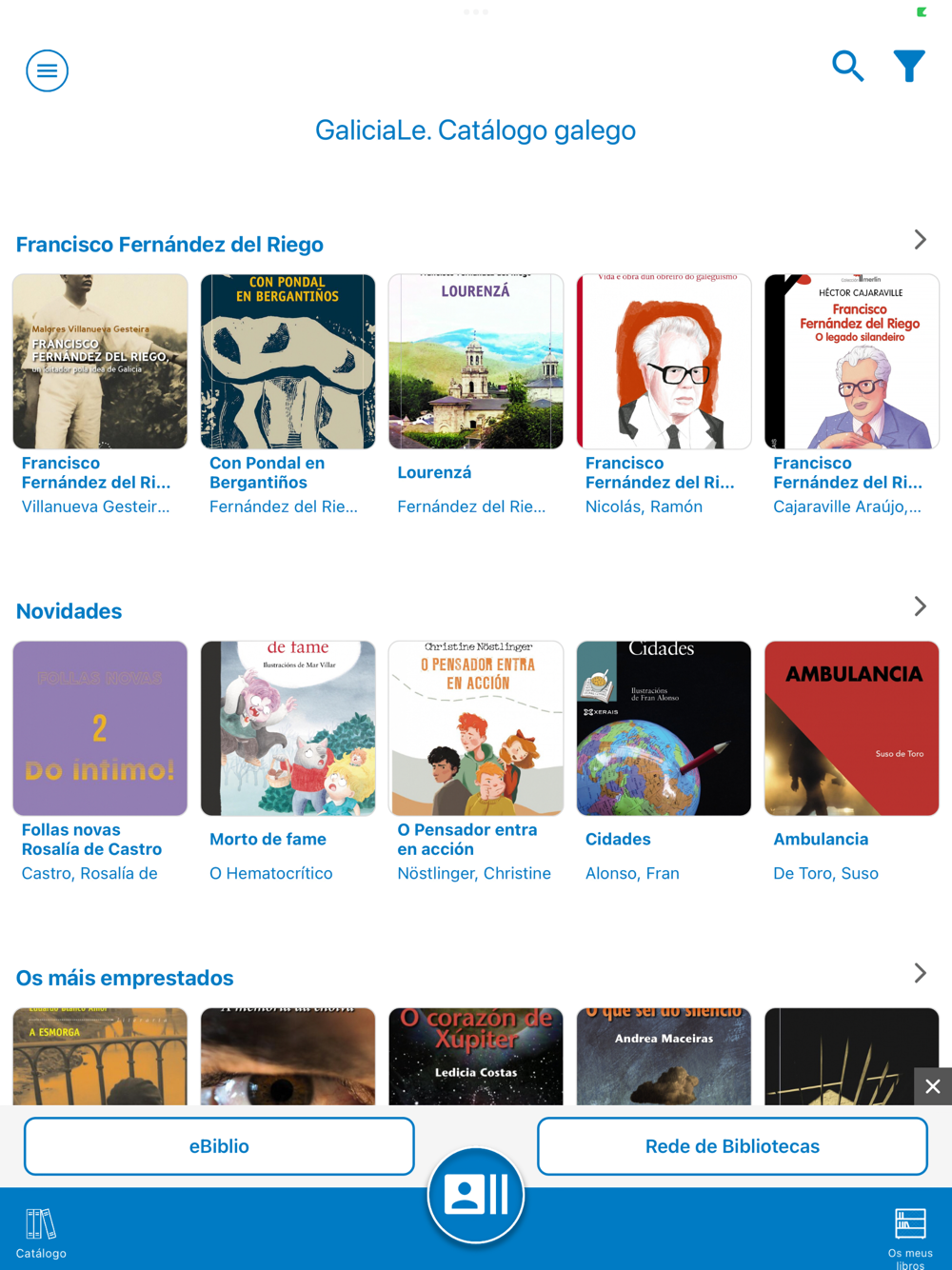 También incorpora un acceso directo a eBiblio y al catálogo de bibliotecas físicas de la Rede.