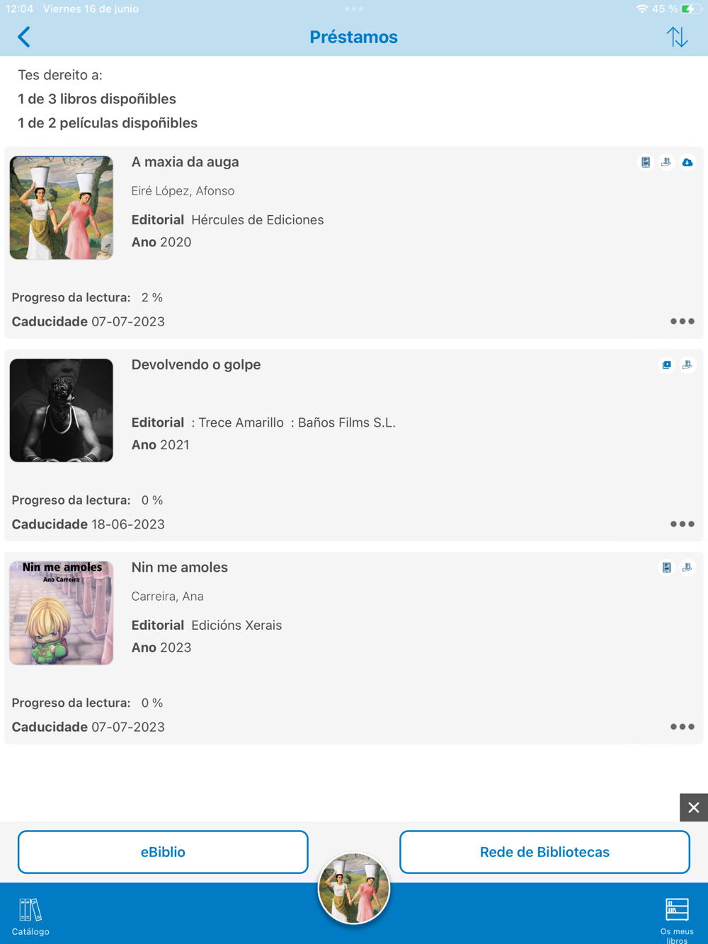 Con ella puedes llevar siempre contigo todo el catálogo gallego de biblioteca digital de préstamo GaliciaLe. Podrás consultar el catálogo, tomar en préstamo libros, revistas y audiovisuales, visualizarlos en línea o descargarlos, de forma gratuita, a cualquier hora del día y todos los días del año.
