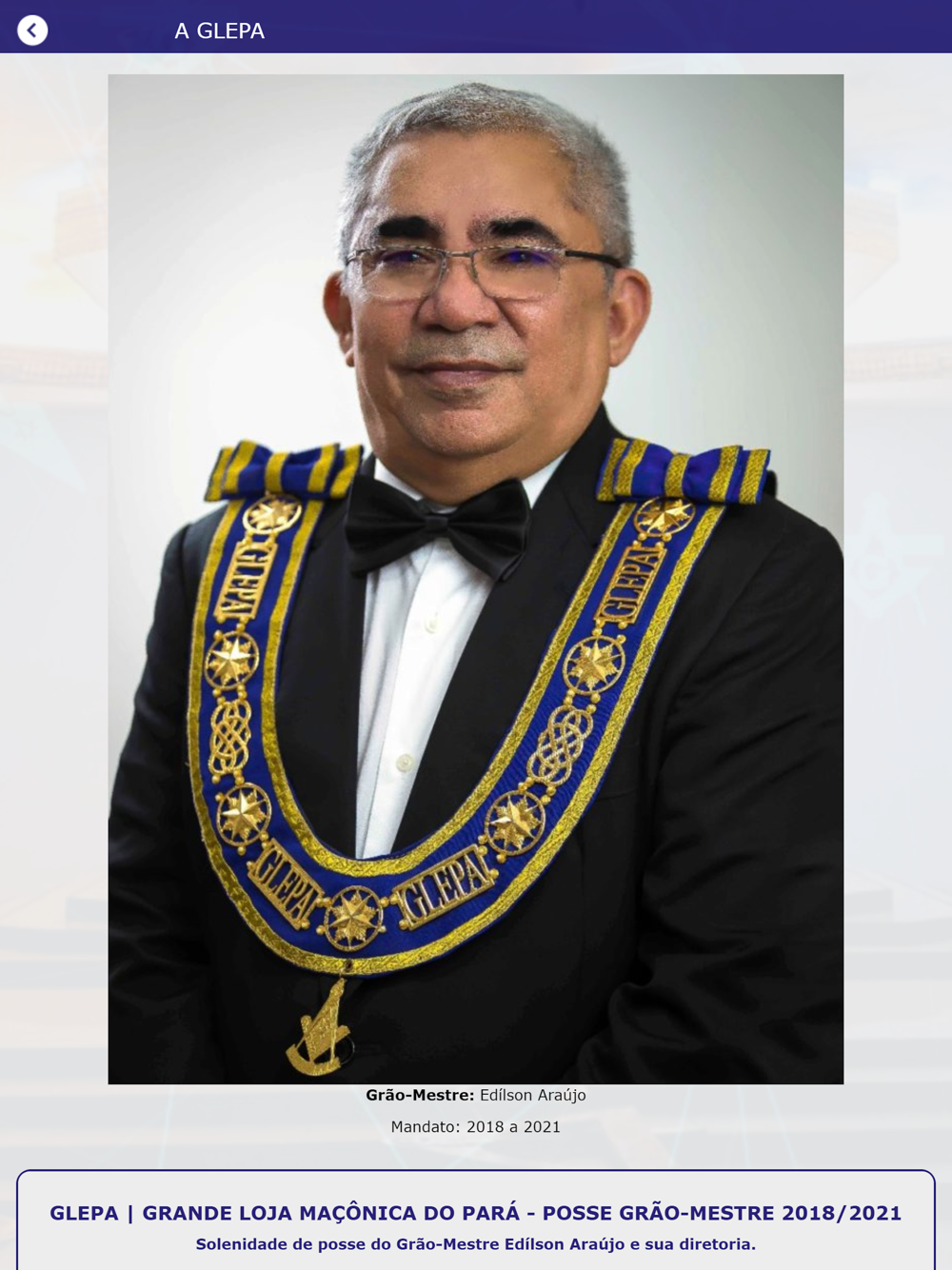 3) Através do menu "A GLEPA" o usuário terá acesso à informações tais como, quem é o atual Grão-Mestre, informações sobre a origem da "GLEPA", entre outros.