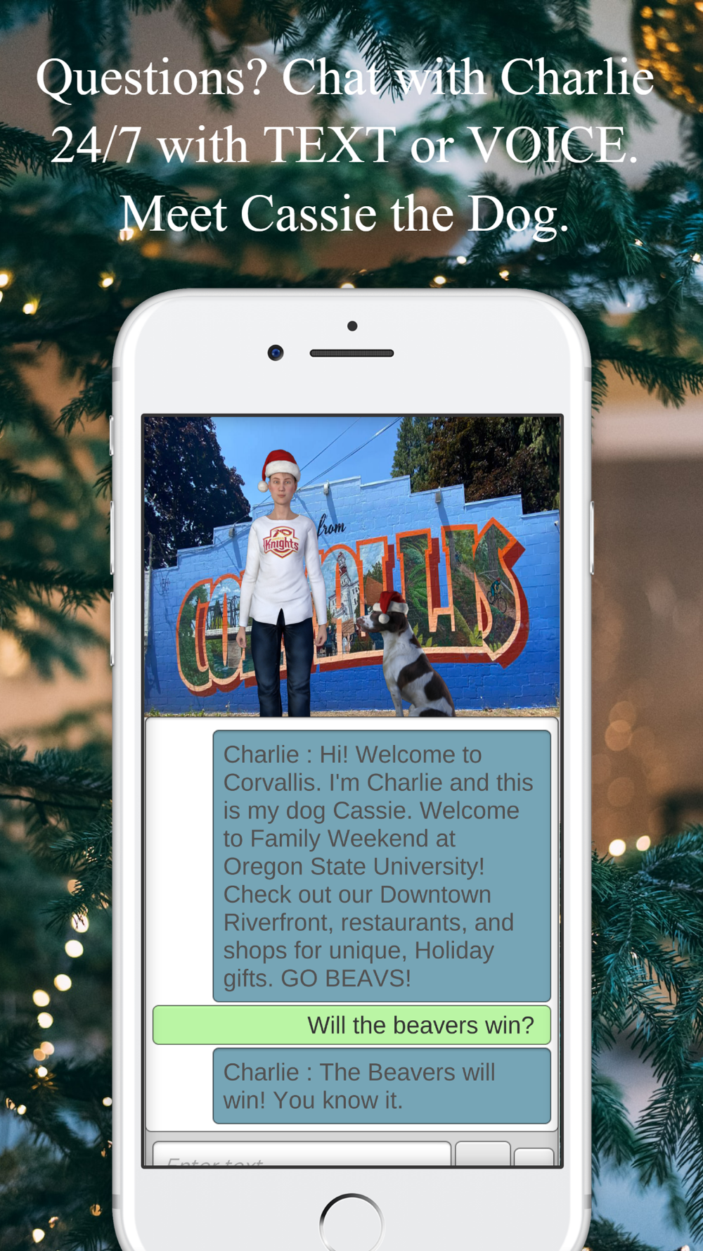 Chat with CHARLIE: Meet our first City's non-binary Chatbot Charlie and Charlie's NEW, adopted dog Cassie. Charlie and Cassie can help you discover what you are looking for with love and kindness. Ask they is the Beavers will win as well as where to find the best pizza.