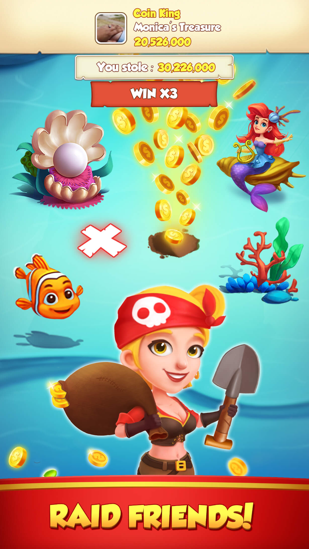 Build bridges to earn tons of coins, attack and raid. Shield your islands and coins from other players' attacks. Build your own pirate kingdom and explore new villages and islands to compete with friends, and become the next coin master in this social pirate adventure game!