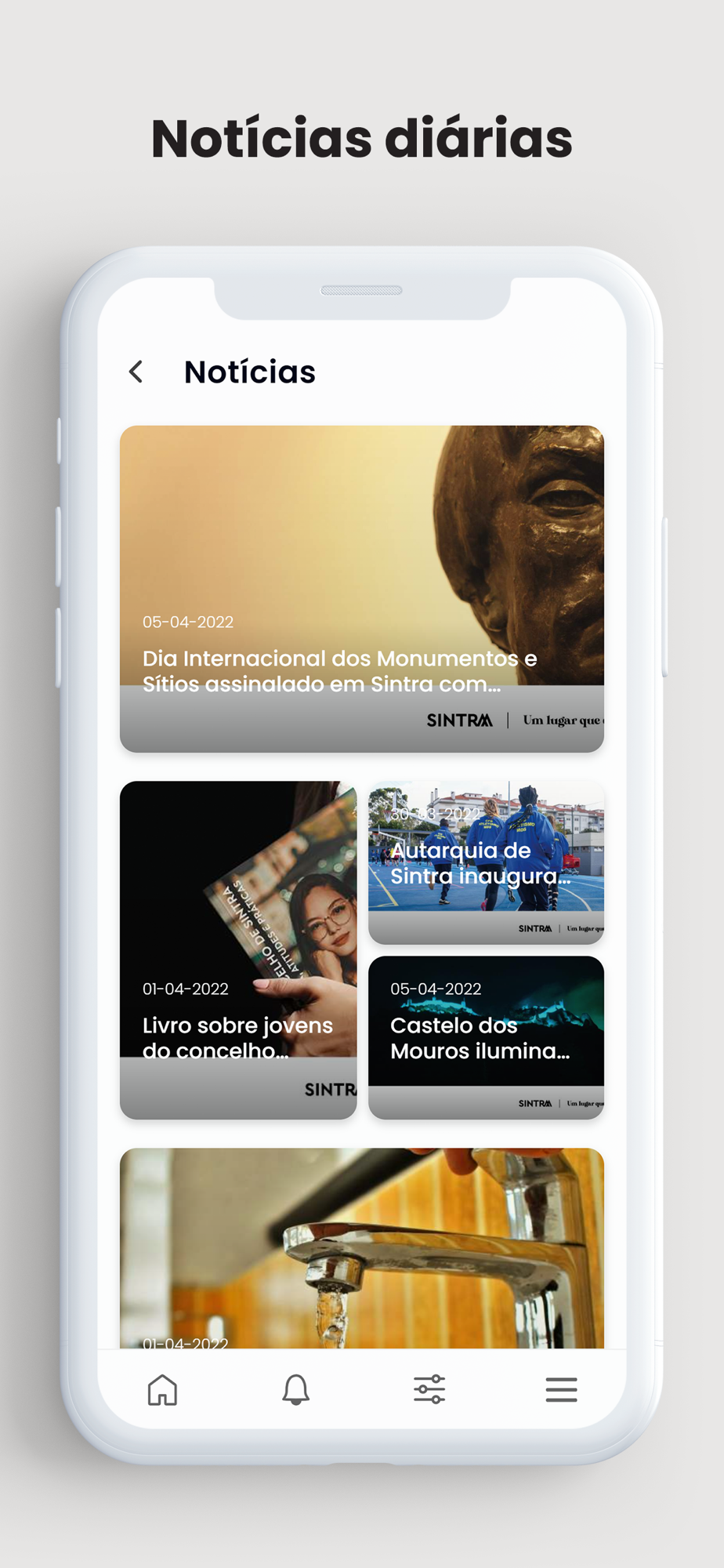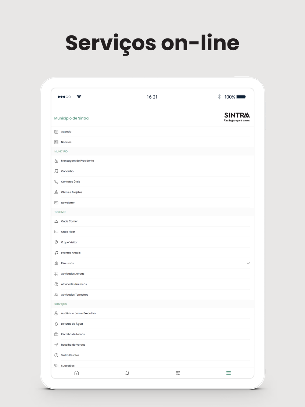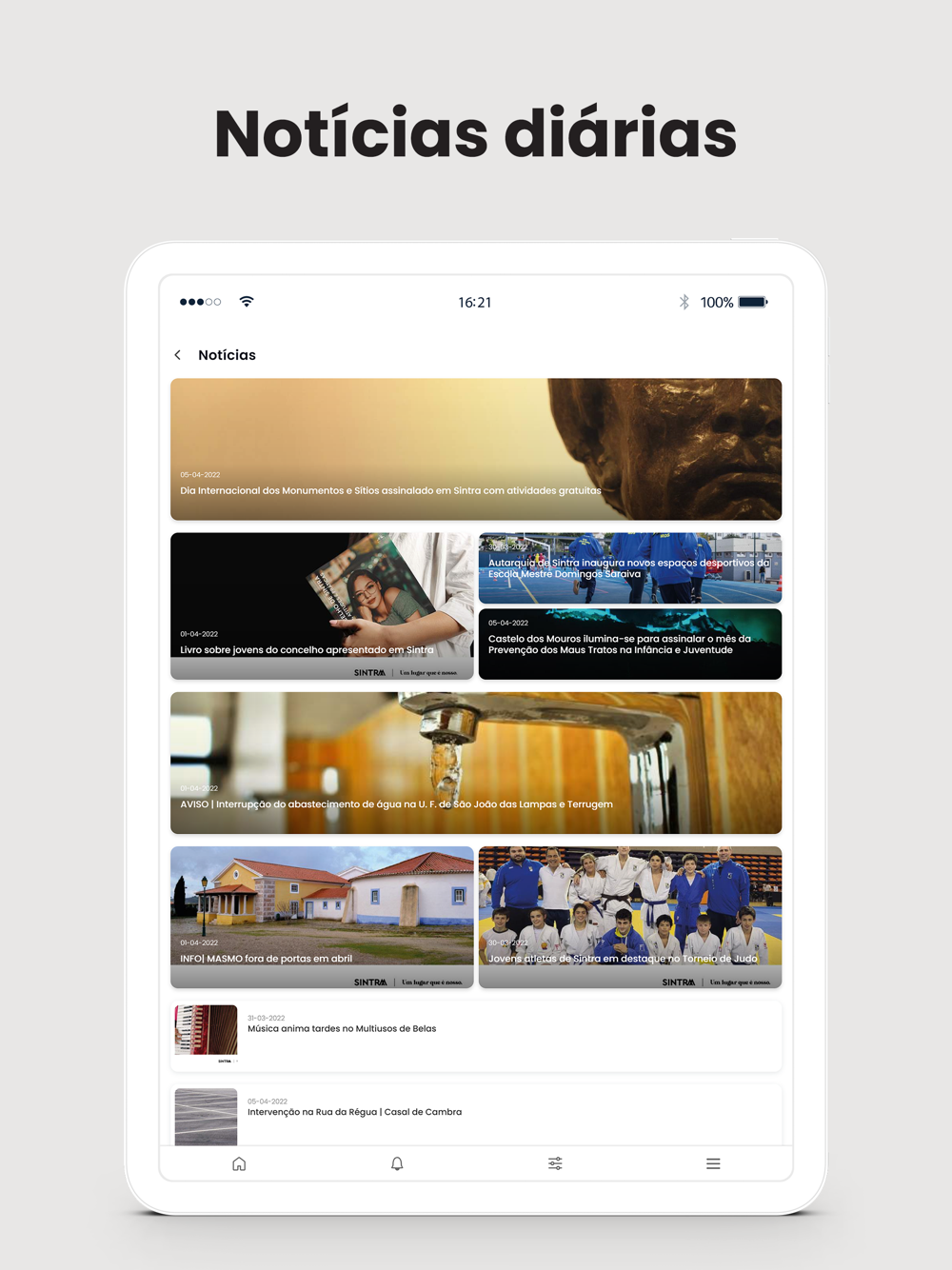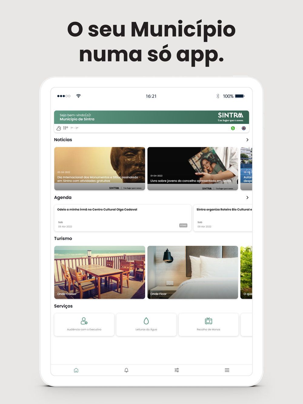 Application that aims to promote news and events, spread of information and tourist and cultural promotion of the municipality of Sintra. The group of features will soon be available and the municipality will be able to communicate and receive direct feedback from the citizens, by providing some services.