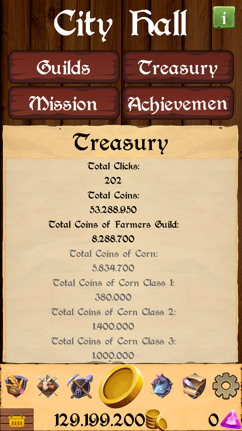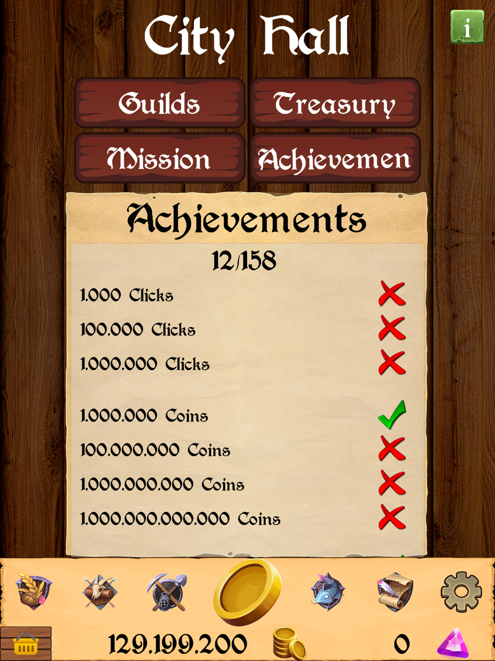 And finally, the town hall, here are represented the different guilds that will offer you different missions that by completing them you will obtain benefits, such as higher profits from the sale of certain items. You can also check the unlocked achievements and how much you have been generating in the different parts. In the future you will have a telephone to be able to speak with the inhabitants of the town.