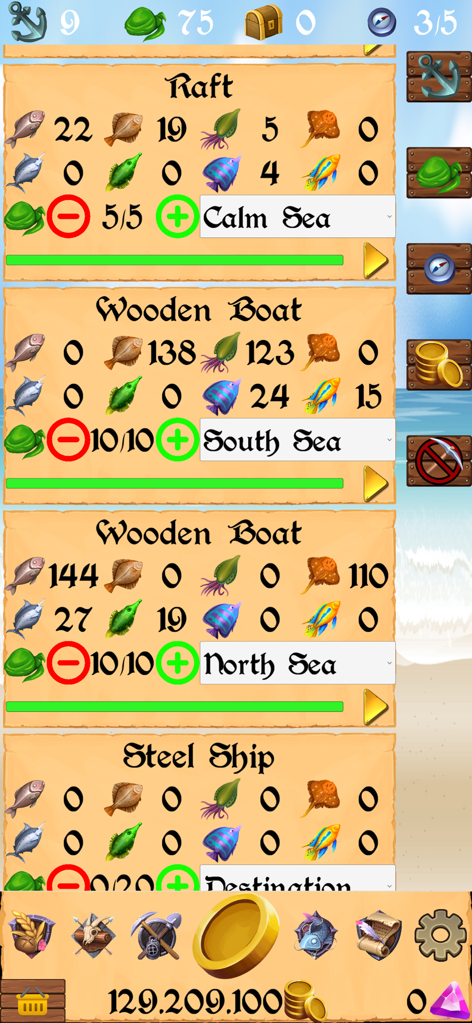 In the port you can buy boats to fish. There are three types of boats, each one with its benefits and advantages, you will have to discover which one compensates you the most.