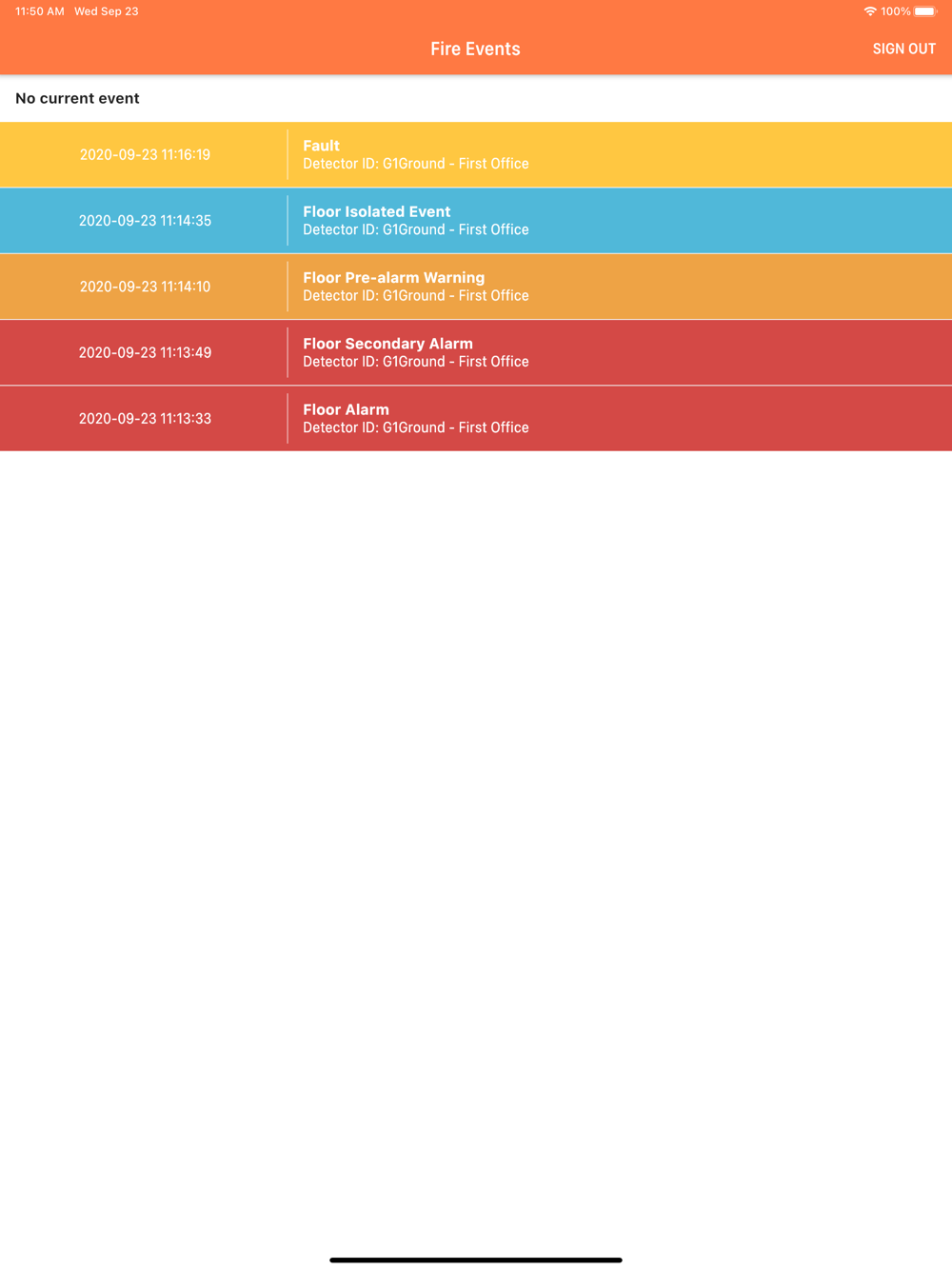 The FireM fire responder application can be configured to discriminate between various fire panel notification conditions including alarms, pre-alarms, faults, and isolates. A record of events is captured locally and off site to allow easy interpolation of reoccurring or troublesome alarm conditions.