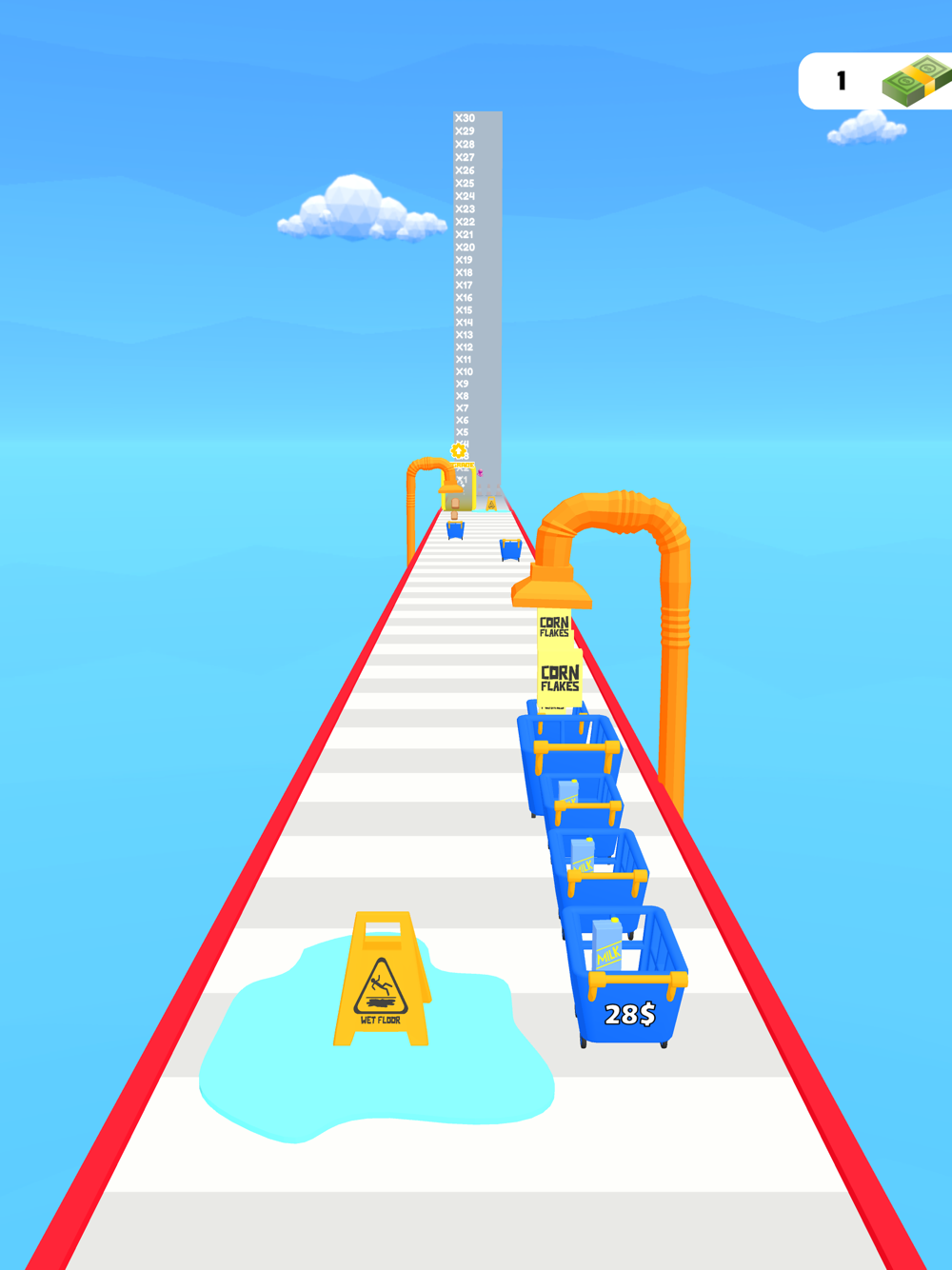 Shopping time! Grab products, stack grocery carts, and avoid obstacles!