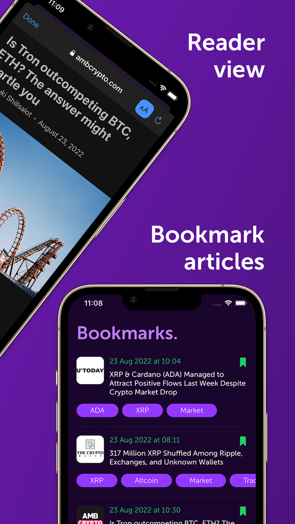 nCrytpo News is a subscription monetised app so you will never see native ads. And by enabling the default reader view, web ads are almost non-existent.