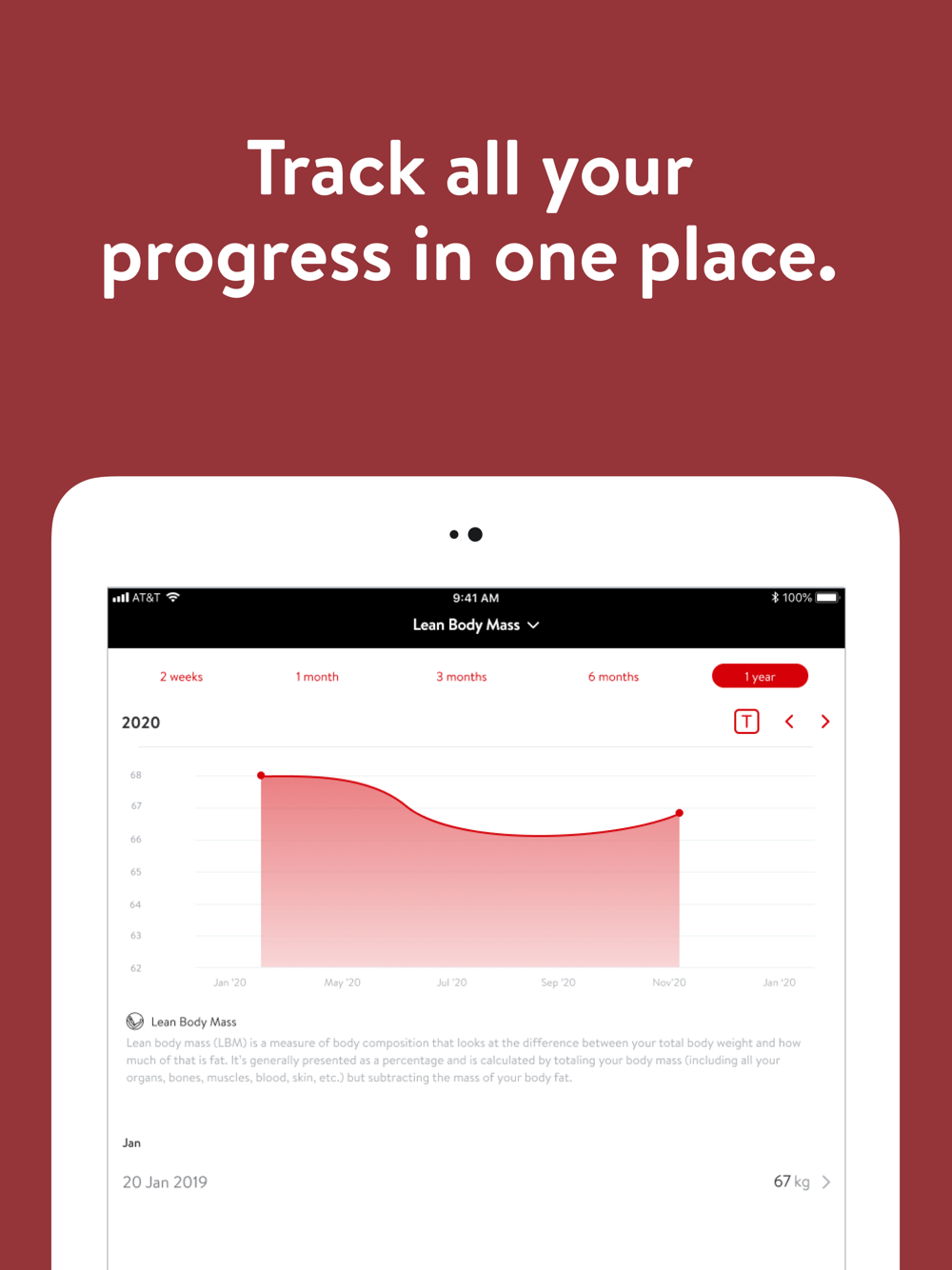 - Track body measurements and take progress photos