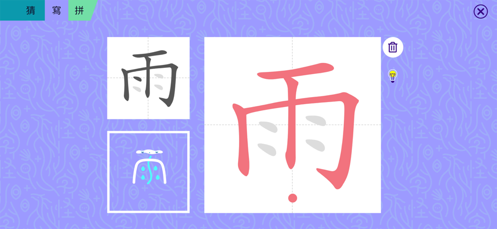 5. Writing strokes guidance: This helps user learn how to correctly write each Chinese character