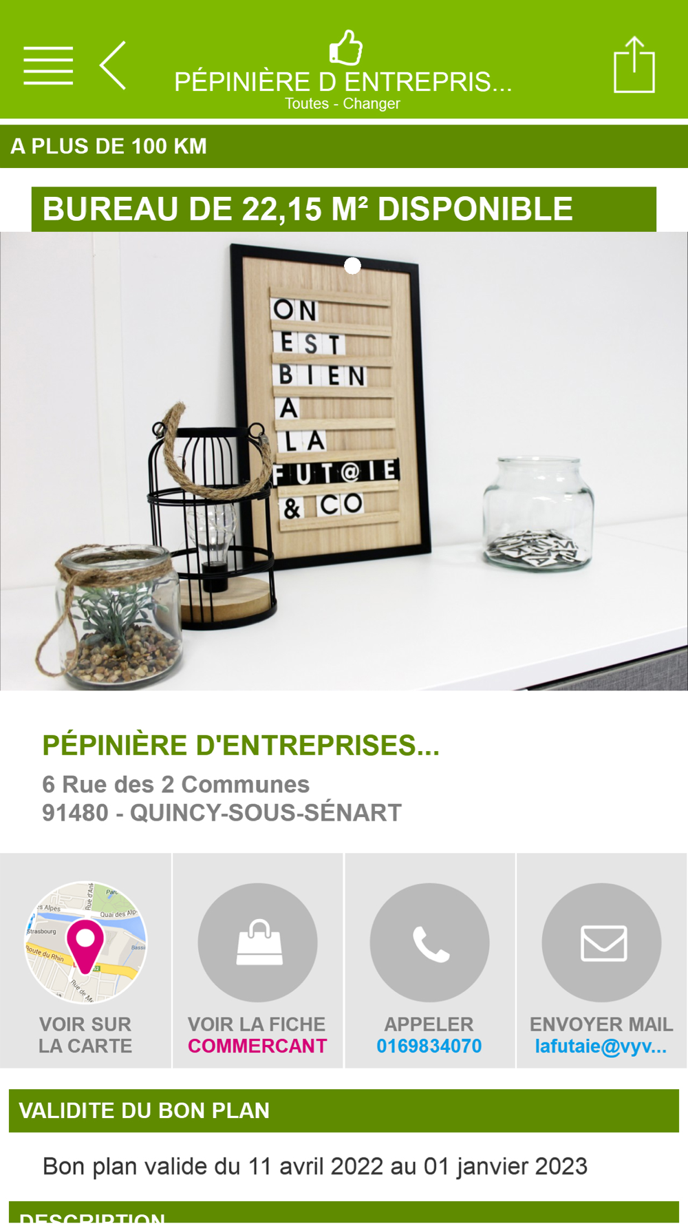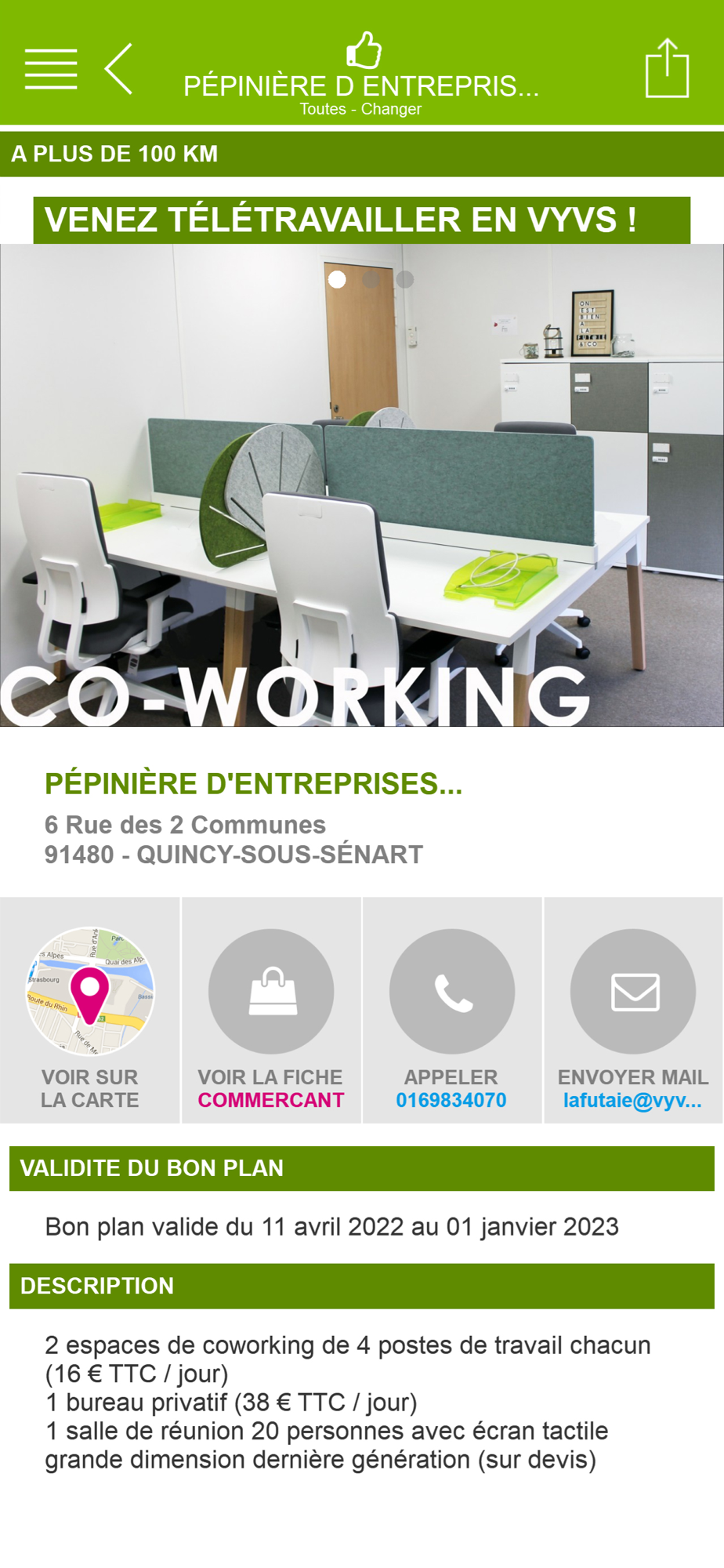 Elle permet de plus de connaître toutes les infos sur tous les déplacements (à pied, en voiture, en transport en commun). De plus, elle offre l’information sur tous les bons plans en cours chez tous les commerçants. Enfin, elle informe sur toutes les activités et actualités de la ville. Le porteur de l’appli « Vitrines Villeneuvoises » a dans sa poche un véritable couteau suisse sur la ville.