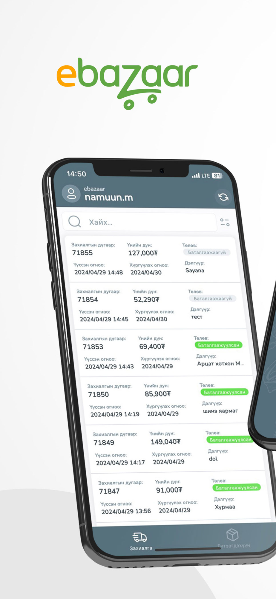 EBazaar.mn технологийн компаны харилцагч байгууллагуудын түгээгч нарт зориулсан түгээлтийн аппликешн.