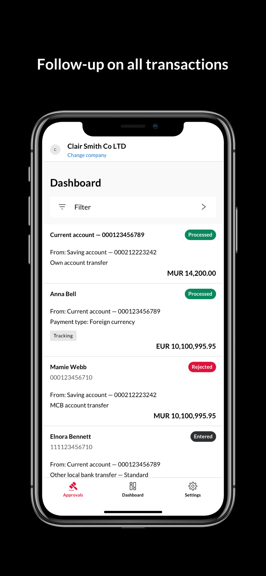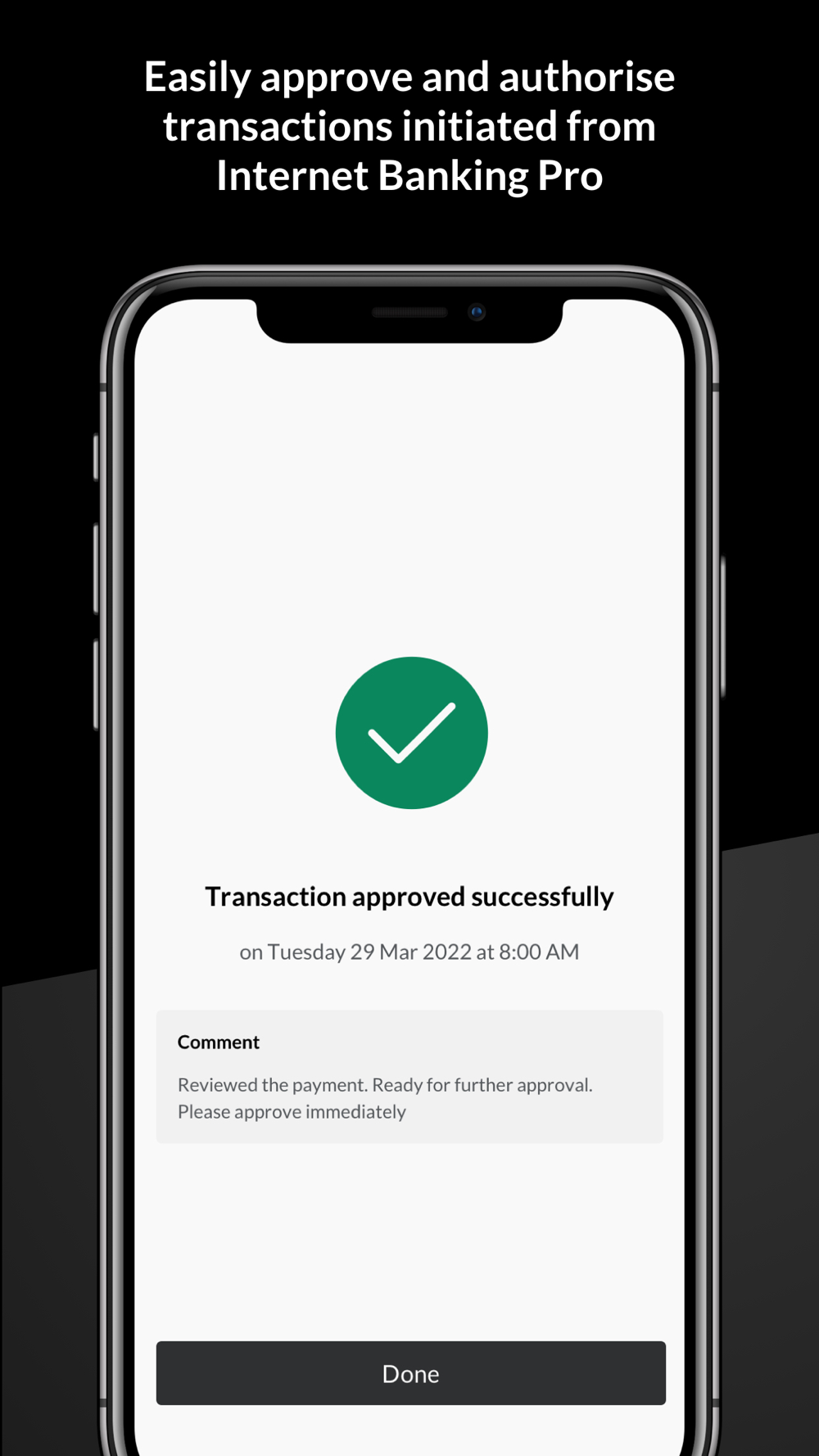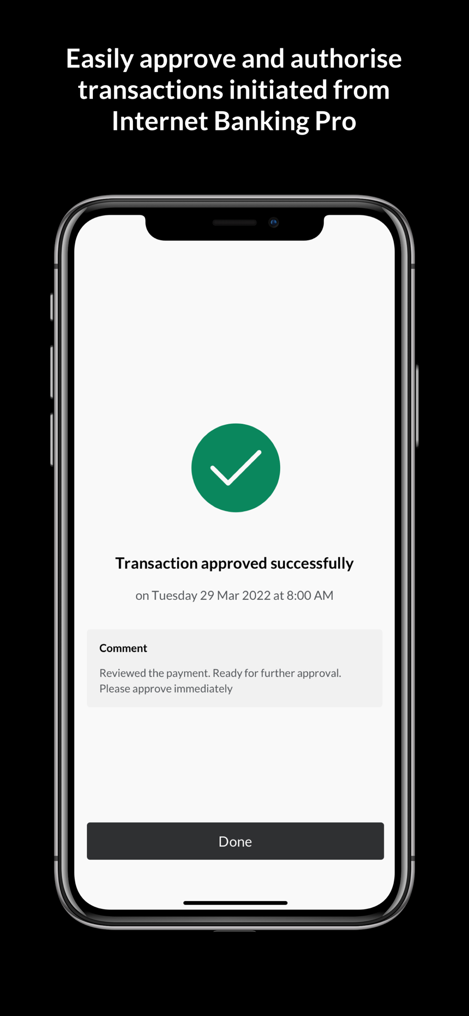 You will be able to login and authorise your payments in a simple and secure way. The application has the below main features: