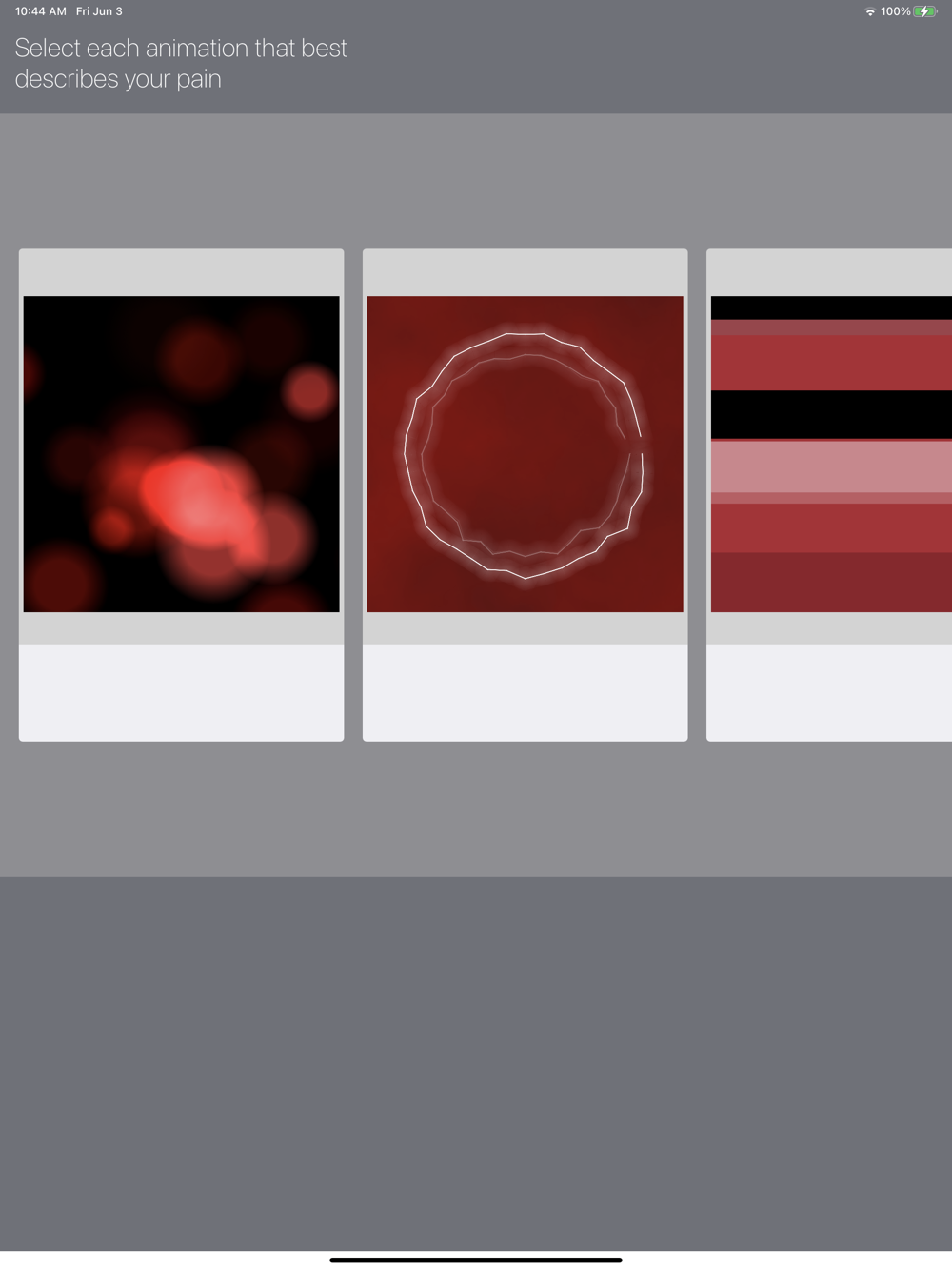 Painimation addresses the limitations of current unidimensional pain scales by allowing patients to express their pain using a dynamic and multidimensional medium—animations. We hope that the use of abstract pain animations will help facilitate patients' conversations about chronic pain and improve the quality of pain treatment.