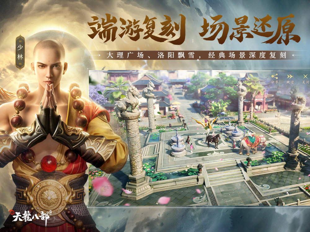 借助最新PBR引擎渲染技术,重现大理古城、洛阳飘雪等众多端游经典场景,更有端游经典坐骑、经典珍兽、经典时装等原版复刻,带你重忆天龙岁月。