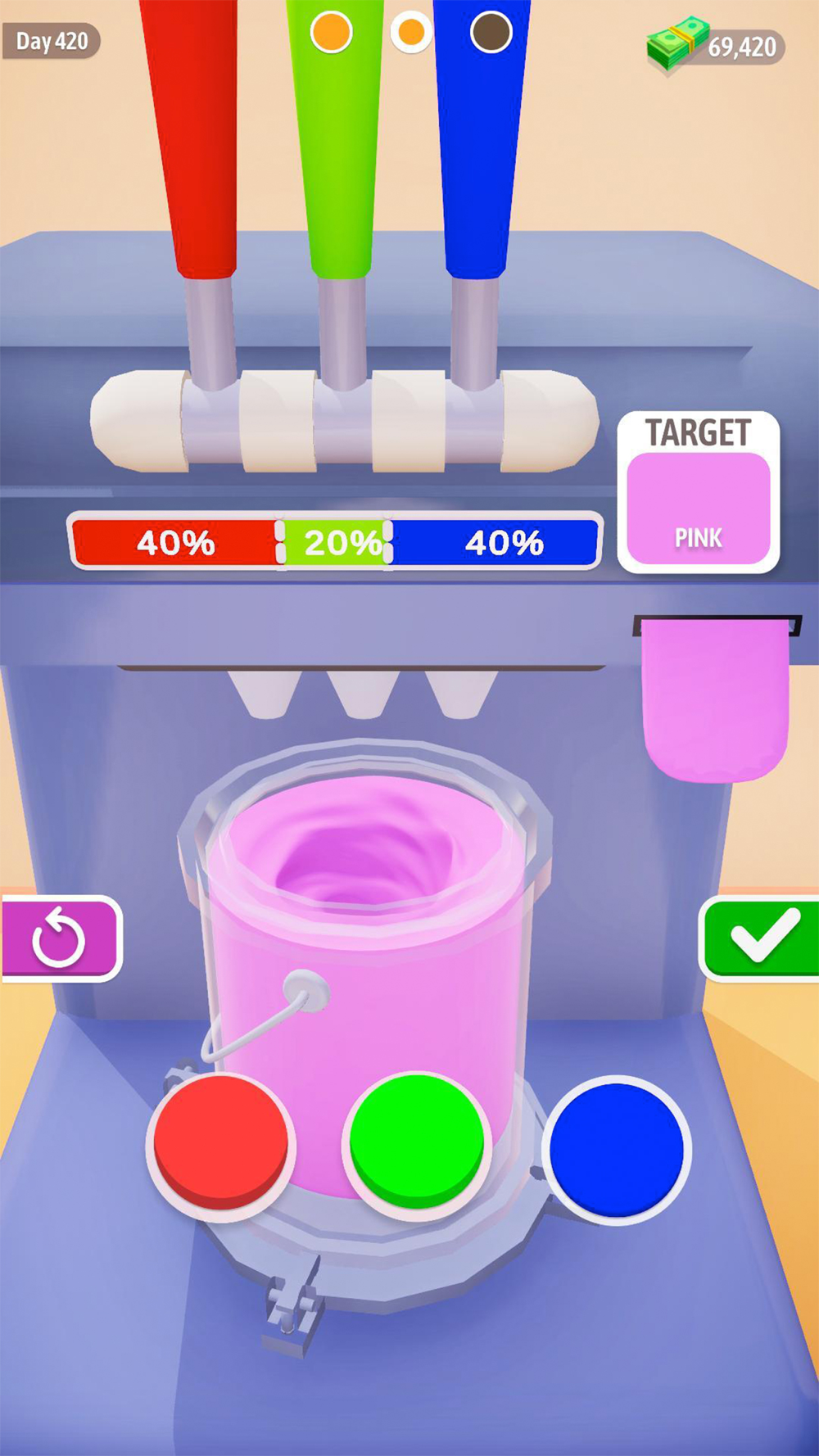 Mix colors in the color mixing machine to make the right color! You can also sell your paint to customers or display them in your room. Explore different themed rooms and paint over walls to create masterpieces!
