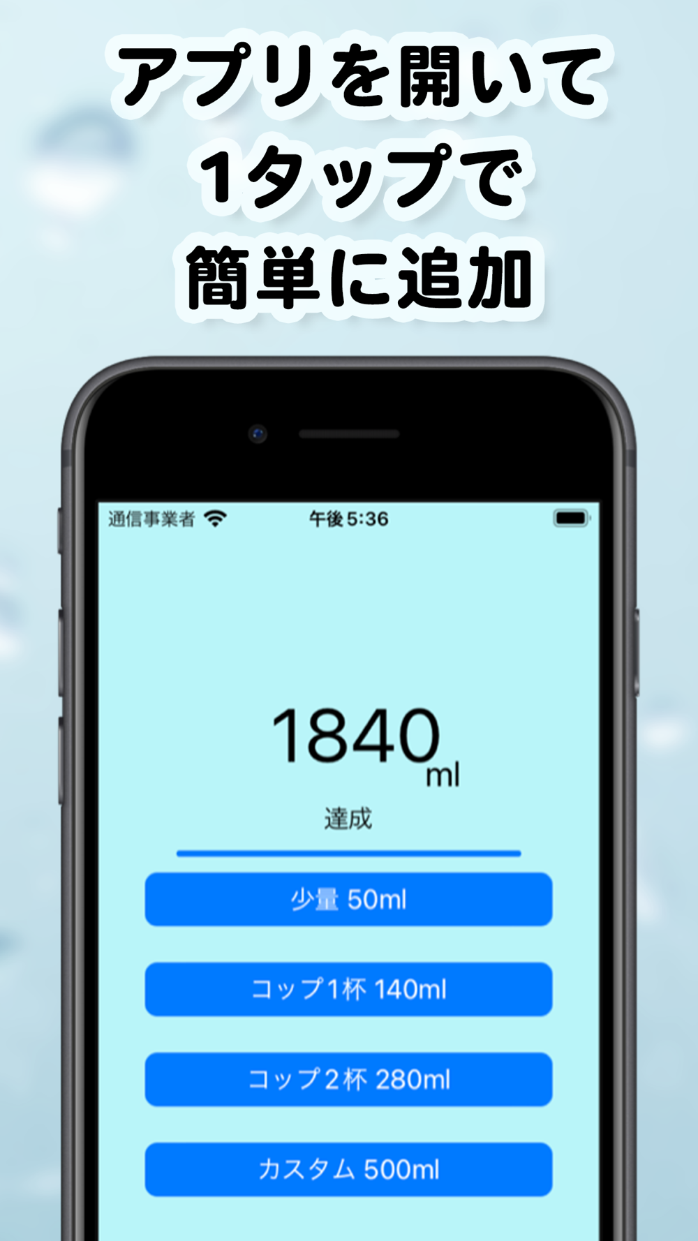 ・アプリ起動から”1タップ”で水分摂取量を追加