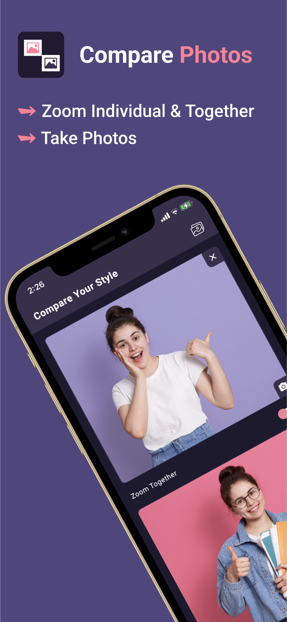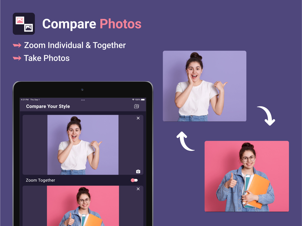 Compare Photos - Image Picture is the best app to compare your fashion tools like Goggles, Tshirts or any clothing photos in real-time. It is easy to use and helps you to select your favorite item.