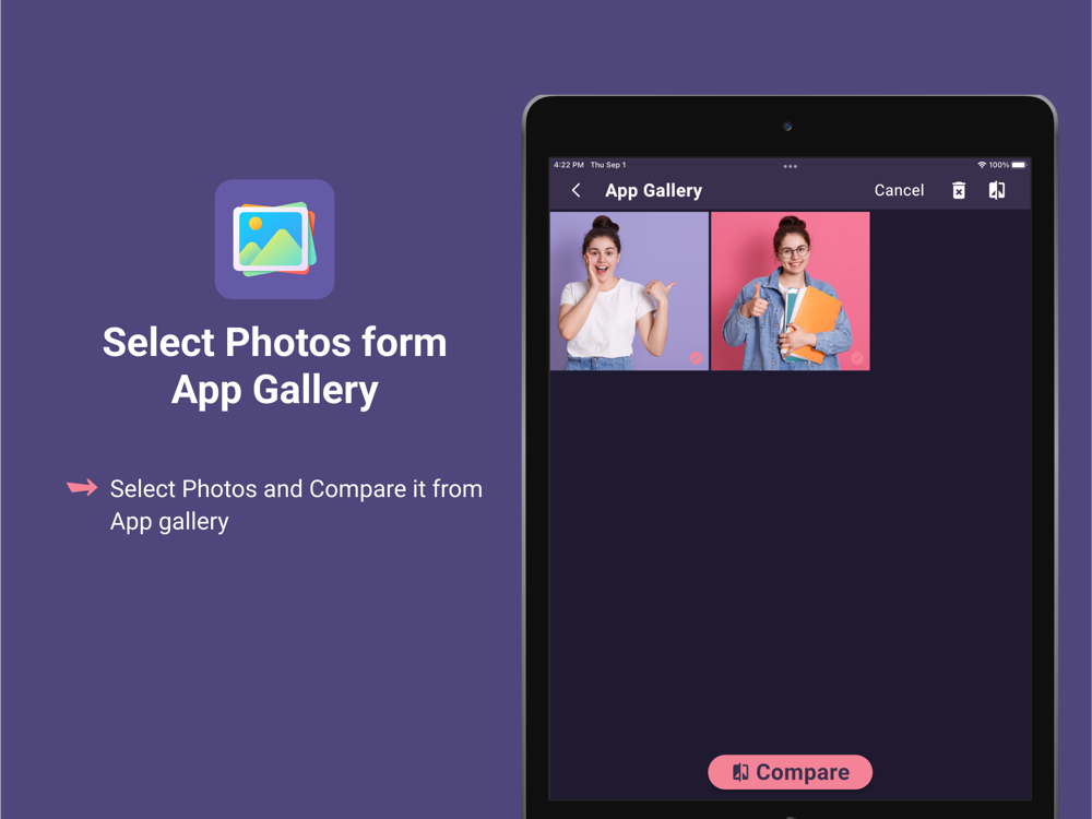 - Add and delete Photos into our custom app gallery locally so you can use easily to compare at any time.