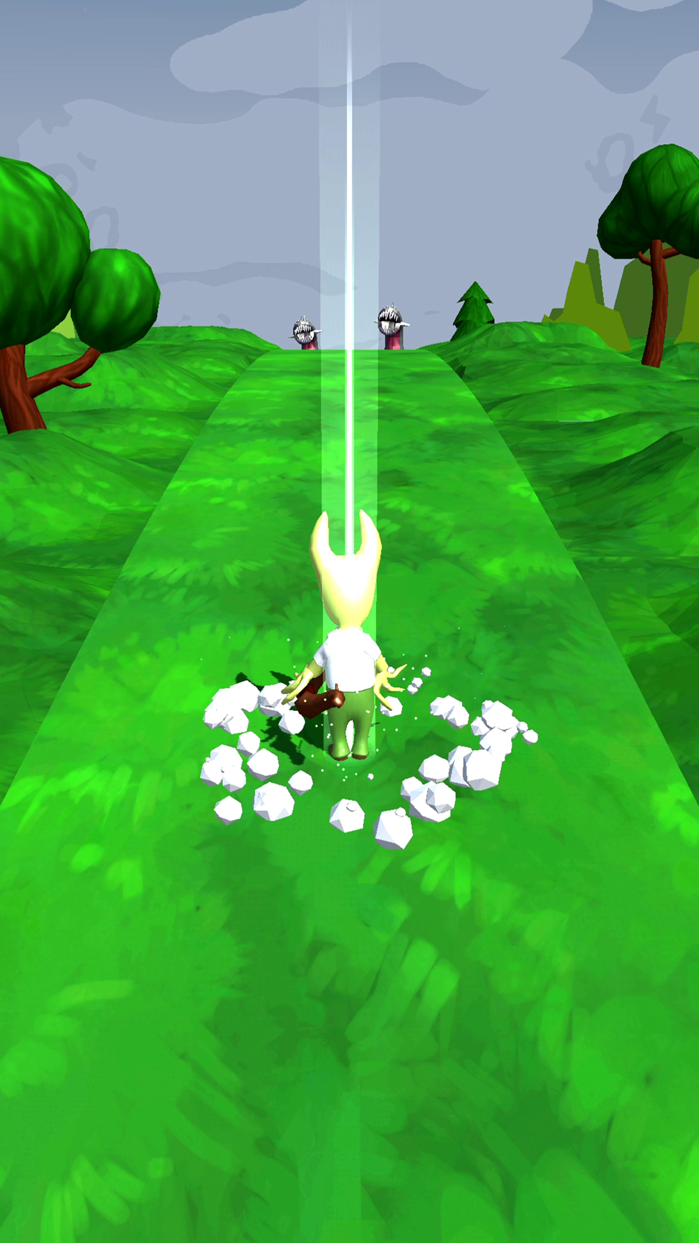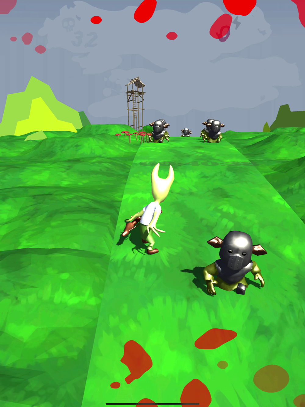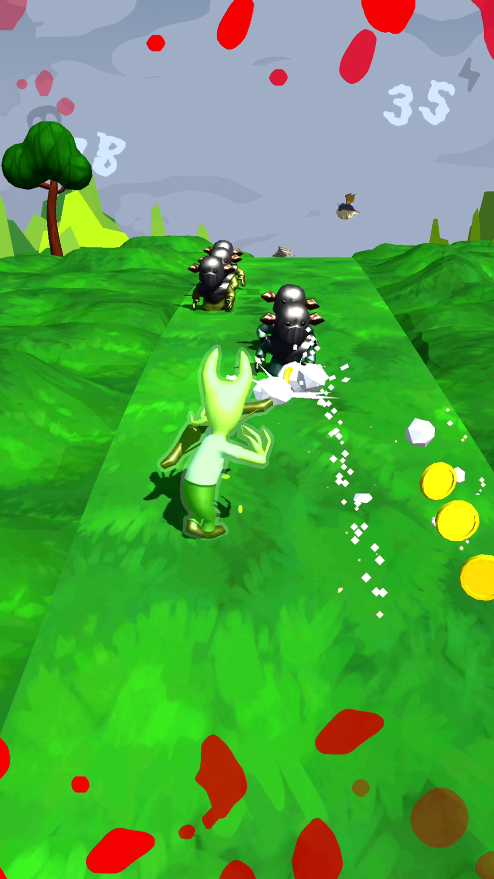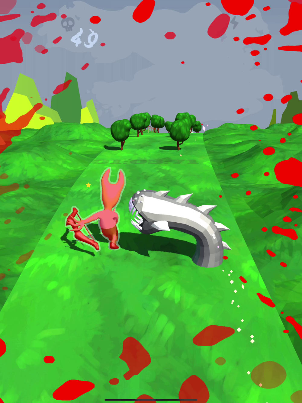 A runner game where avoiding obstacles maintains speed and health and stopping an oncoming enemy is rewarded with medals for level progression and coins to upgrade.