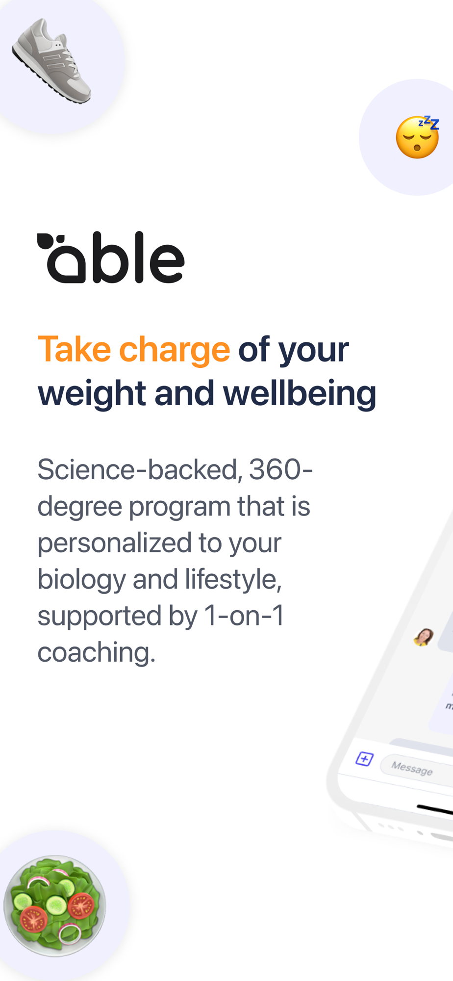 Able provides a science-backed, comprehensive program that is personalized to your biology and lifestyle, supported by 1-on-1 health coaching, so you can achieve lasting weight goals and optimal metabolic health.