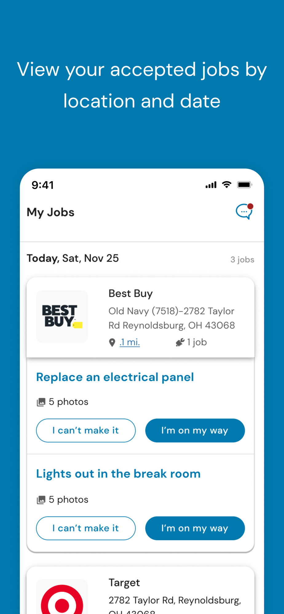 The app allows you to manage your schedule, check and check out of job sites, upload photos and more.