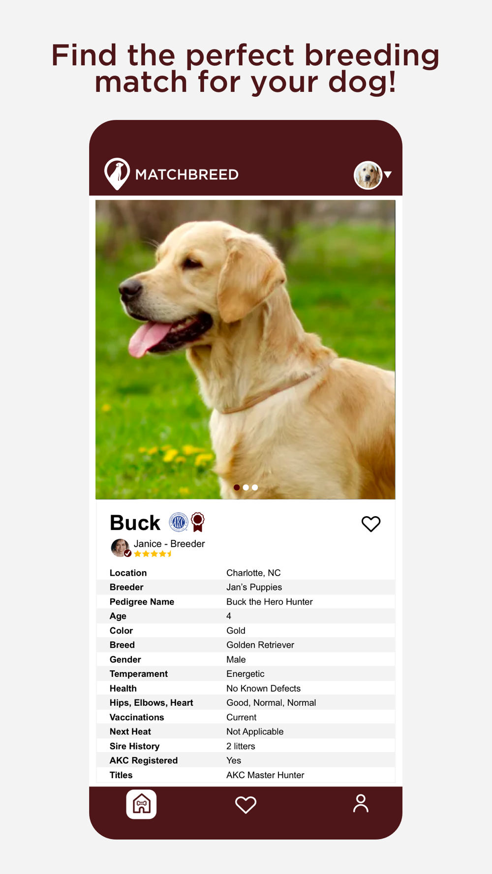 MatchBreed is a mobile application designed to help dog owners identify potential breeding partners and provide breeders a platform to reach buyers.