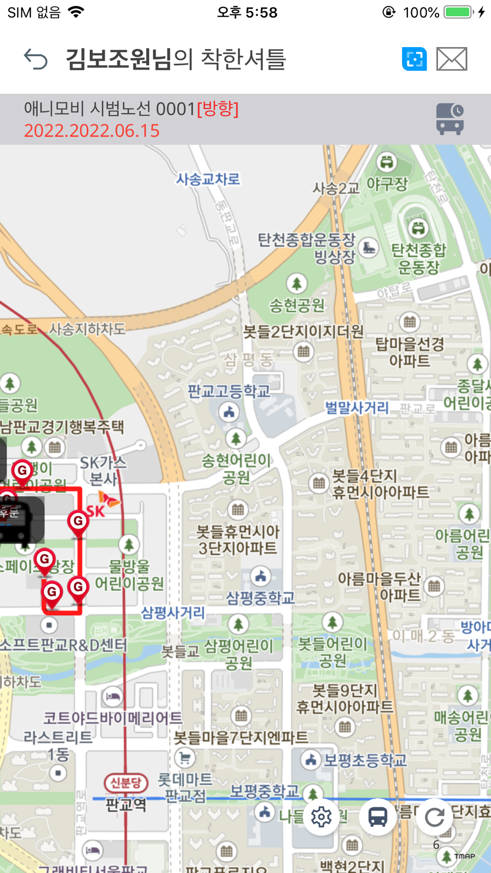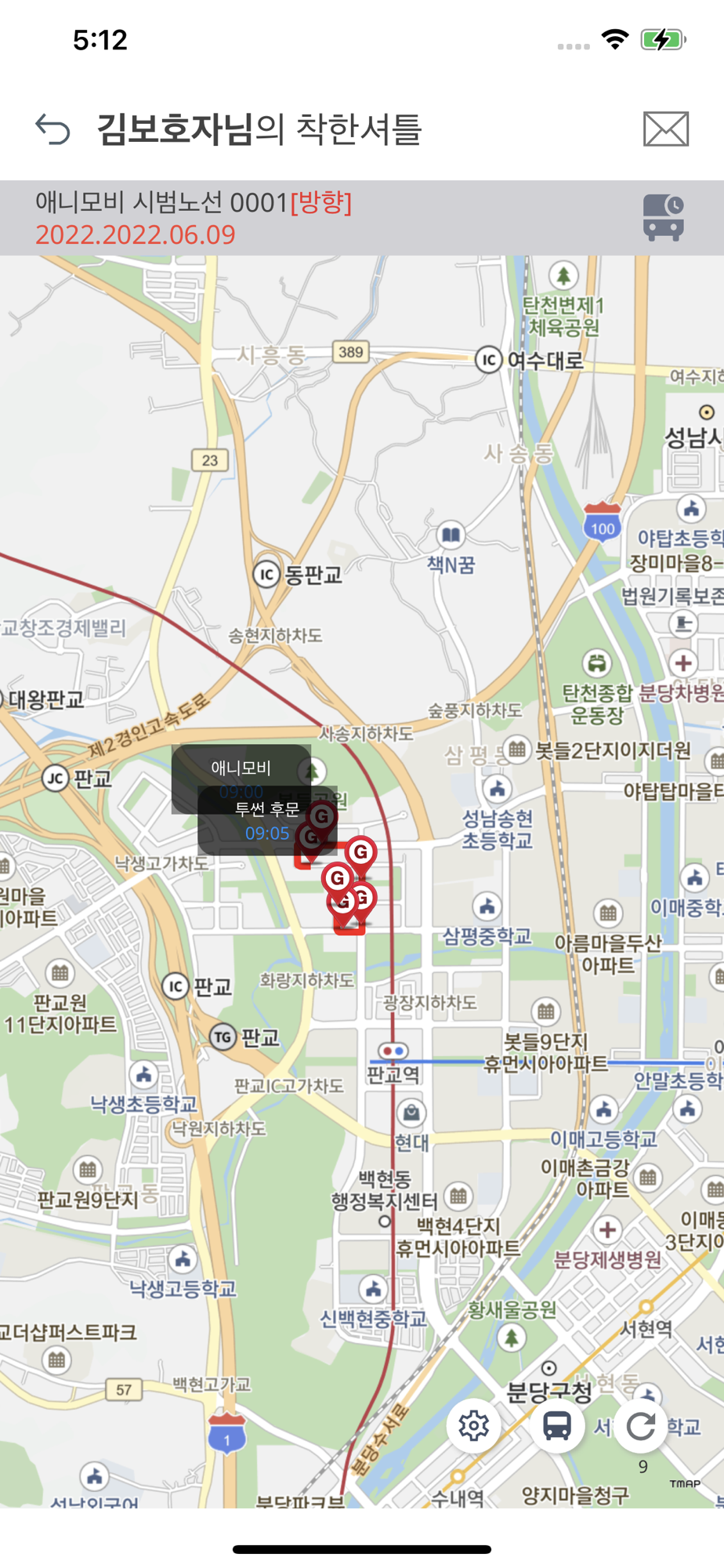 착한셔틀 노선 정보를 조회하고 현재 셔틀 버스의 위치와 정류장 도착 시간을 확인할 수 있습니다.