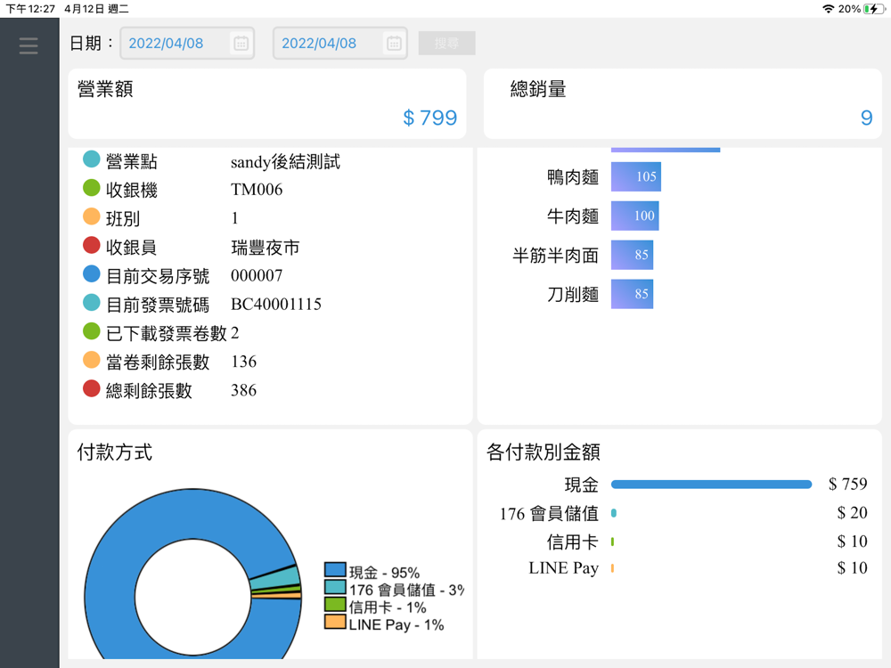 • 即時報表:手機、平板就能查看營業報表,隨時了解店內營運概況。