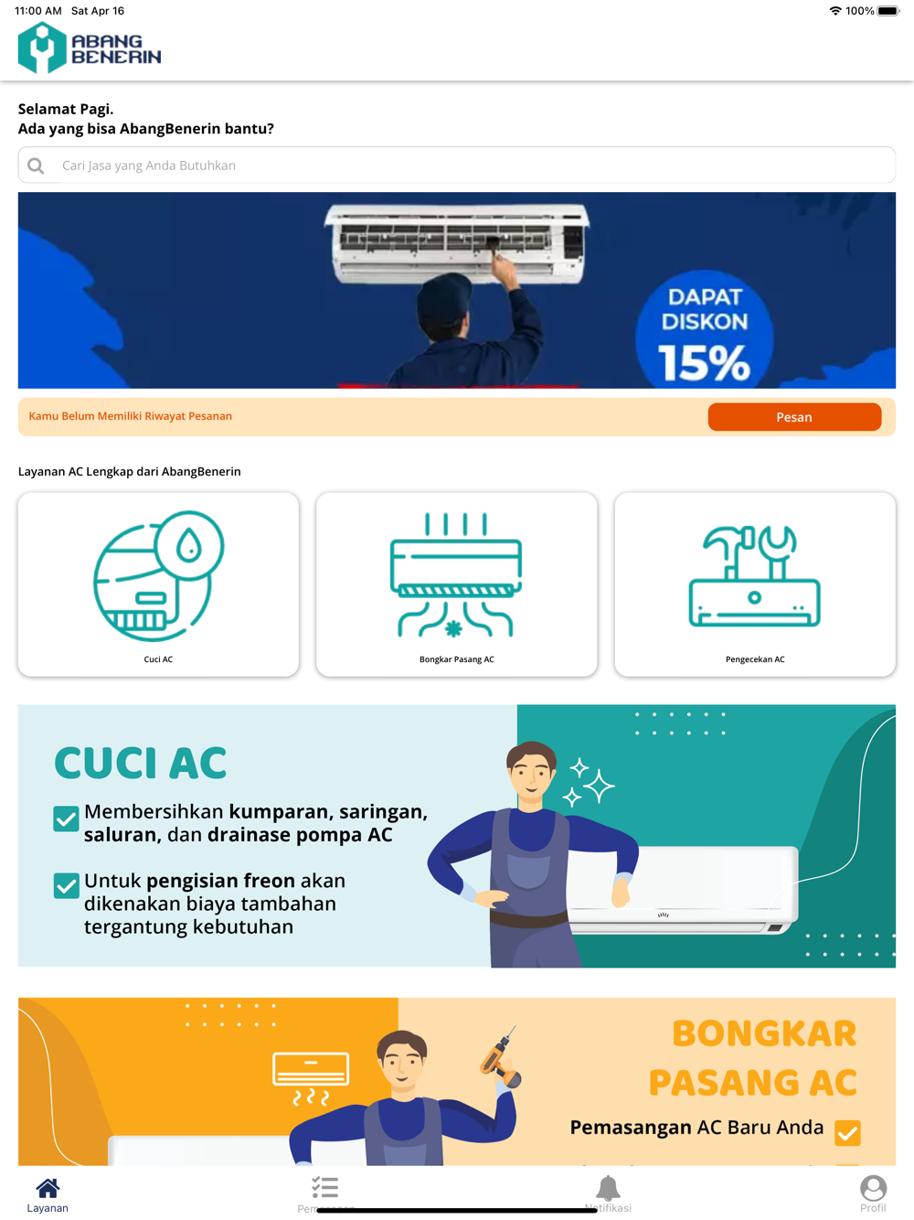 Di layanan Abang Benerin kamu bisa : Cuci AC, Bongkar Pasang AC dan Perbaikan AC.