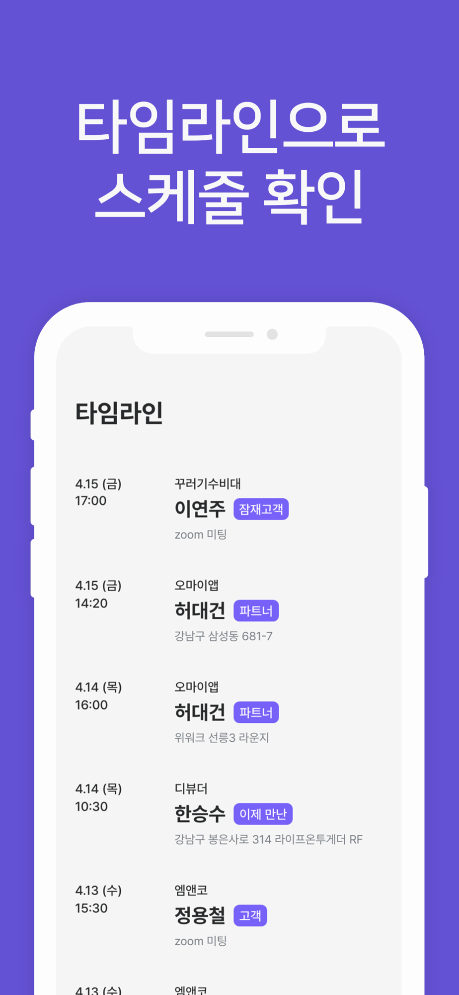 대면 미팅, 이메일, 전화, 화상 미팅 등으로 흩어져있는 이전 기록들
