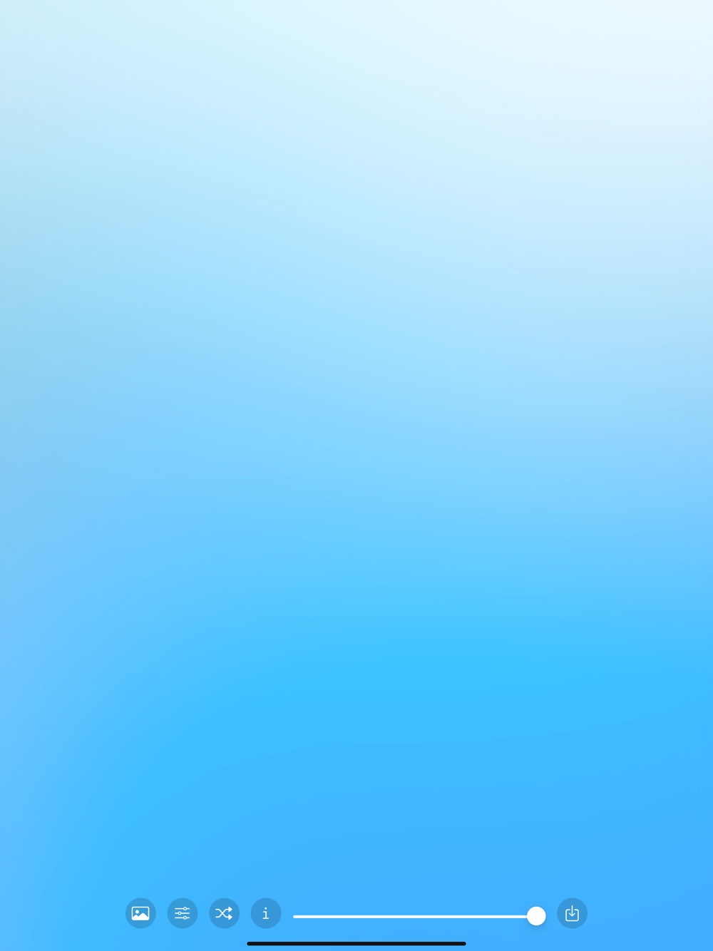 Just shake to shuffle between the bundled photos or import photos from your Photo Library.