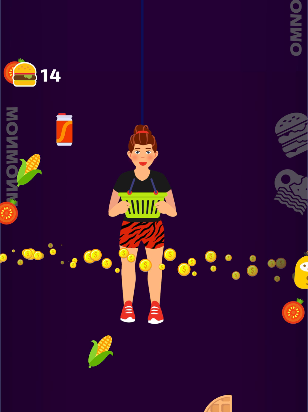 - Simple and addictive gameplay: Just Hold and Drag to catch food dishes!