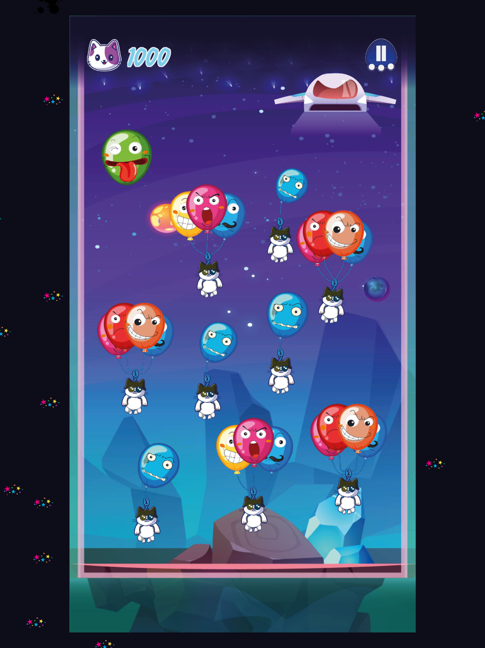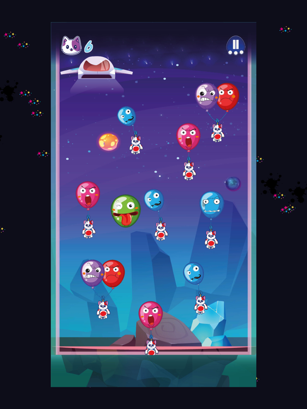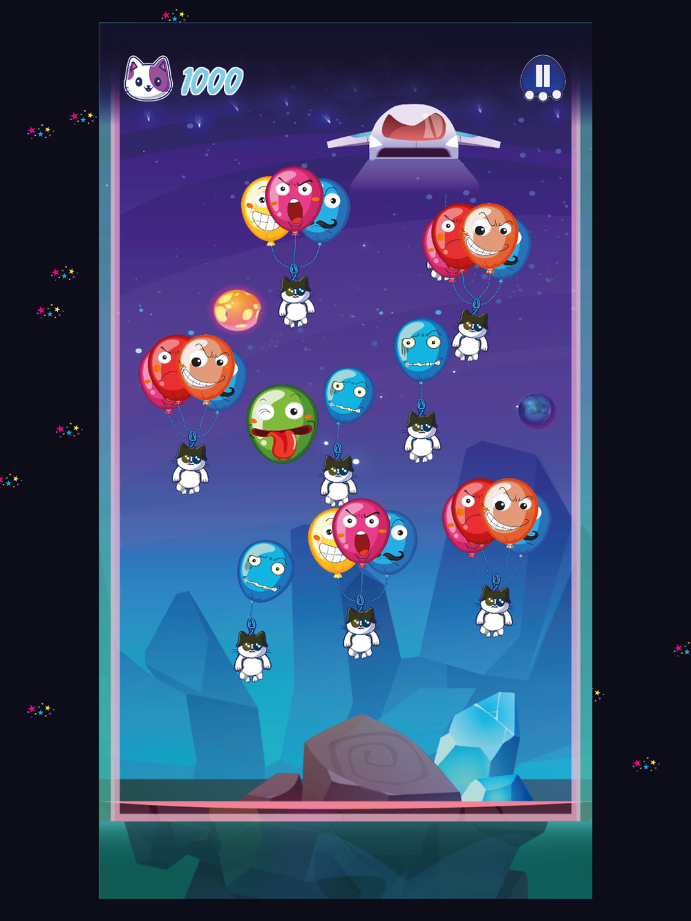 Now the cute animals need you. Aliens are abducting all our lovely friends. Pop the thief balloons to save our cute friends. The cats you rescued will be released. Take your place on the leaderboard as the most cat rescuer. Gather your friends and save our lovely friends.