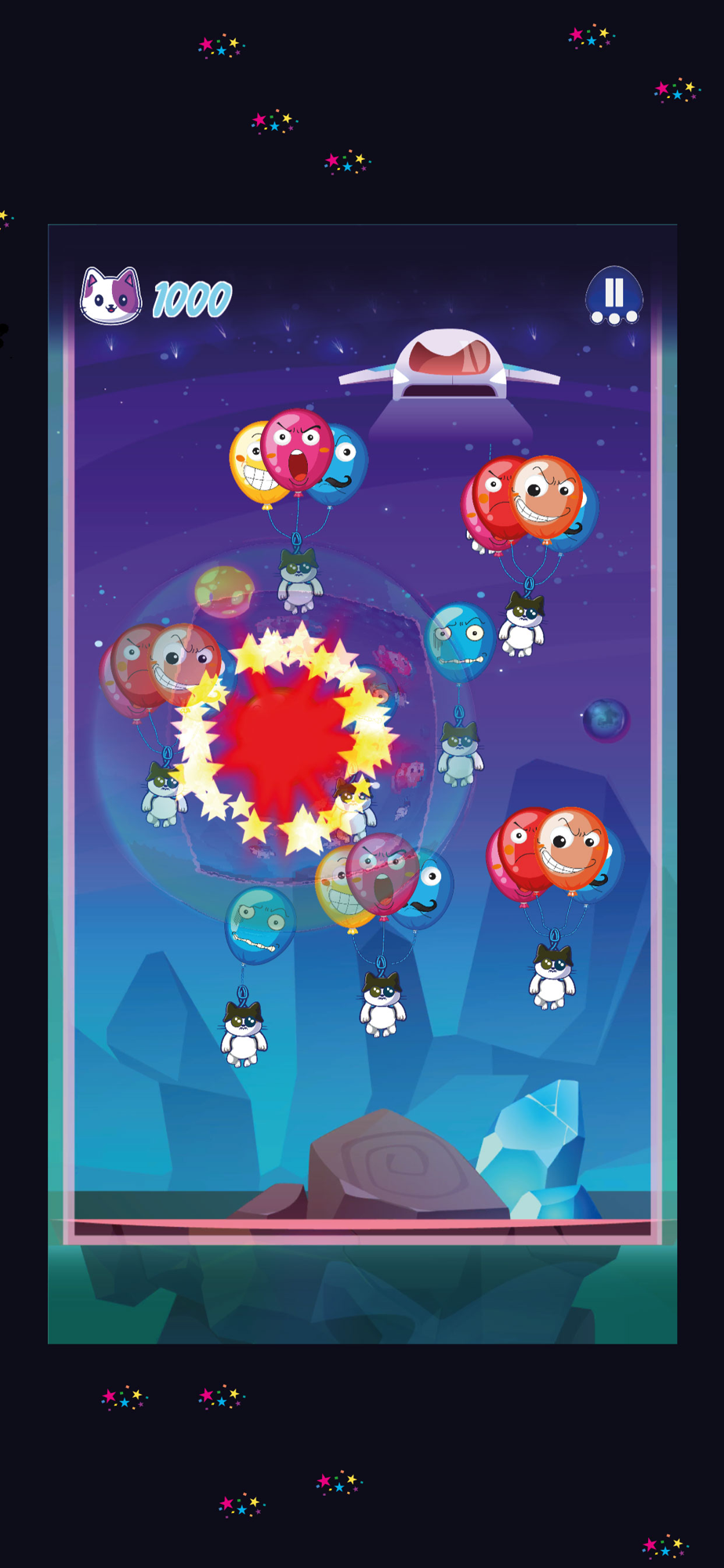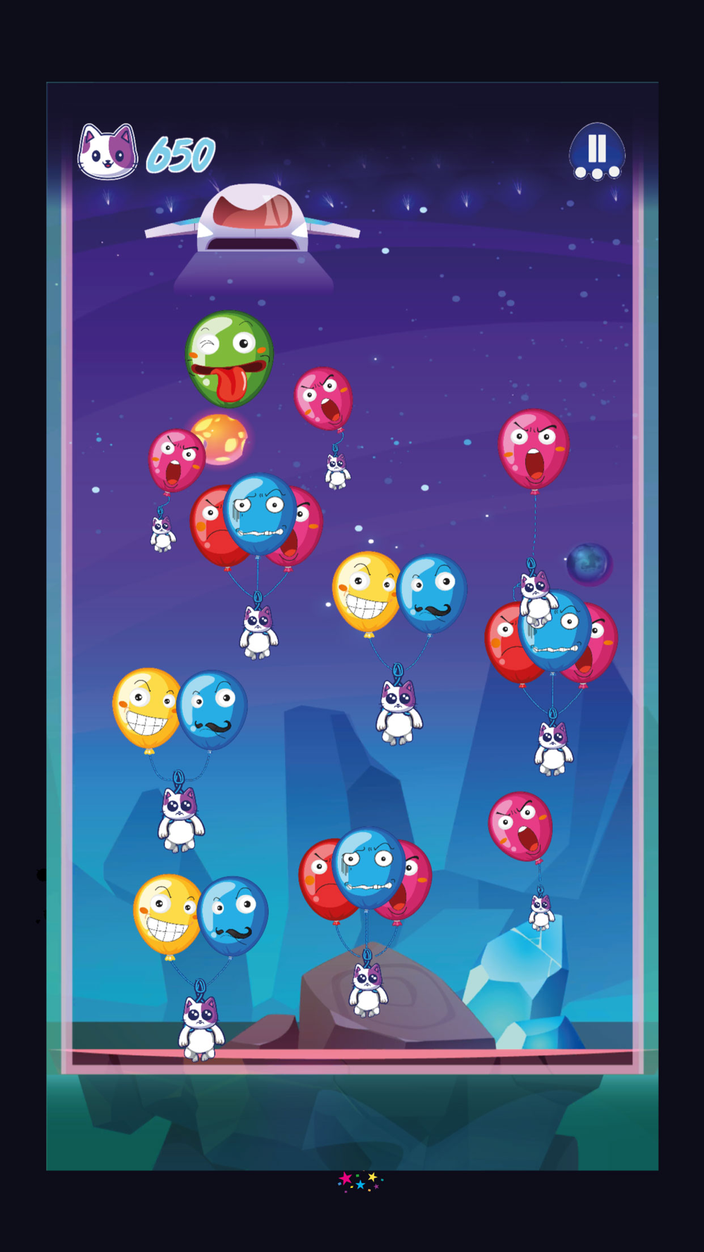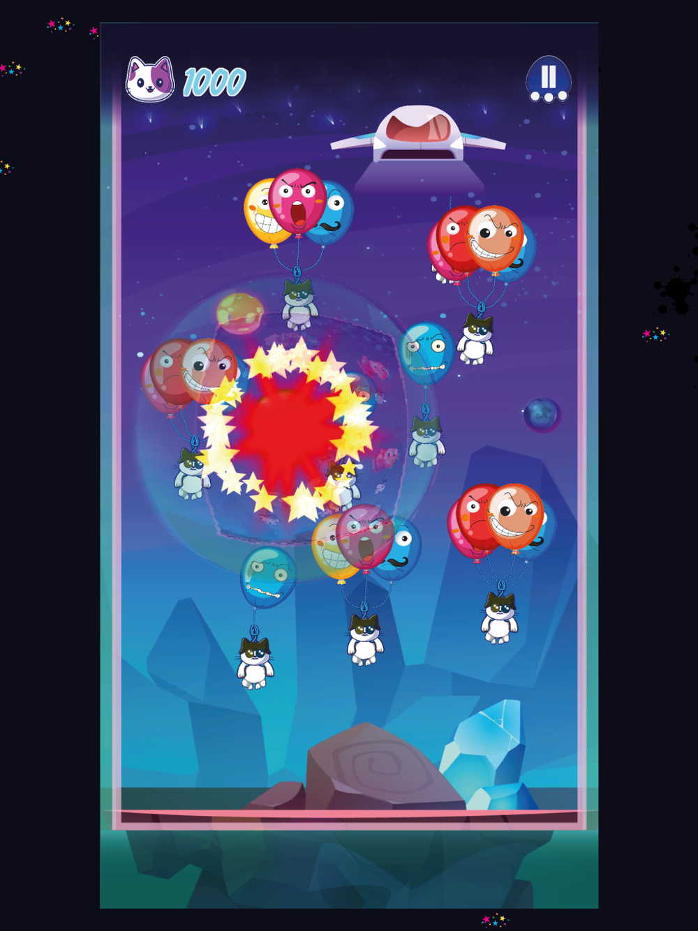 Now the cute animals need you. Aliens are abducting all our lovely friends. Pop the thief balloons to save our cute friends. The cats you rescued will be released. Take your place on the leaderboard as the most cat rescuer. Gather your friends and save our lovely friends.