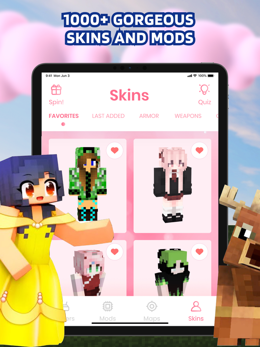 Girl Mods Skins for Minecraft is an application with functional mods, large-scale maps, popular servers and the best selection of skins for girls in the virtual space. Here you will find both the most popular and rare skins that will appeal to even the most experienced players. Change textures, apply mods and create your own world, which consists entirely of your ideas and fantasies, from the landscape to the characters. Change the look from Barbie and pink pony to popular anime characters. Skins can be applied in any of the selected game modes - creative, survival and hardcore. Show your individuality and feel complete unity with your character.The collection is perfect for multiplayer games where updating your look is essential to successful social interactions.