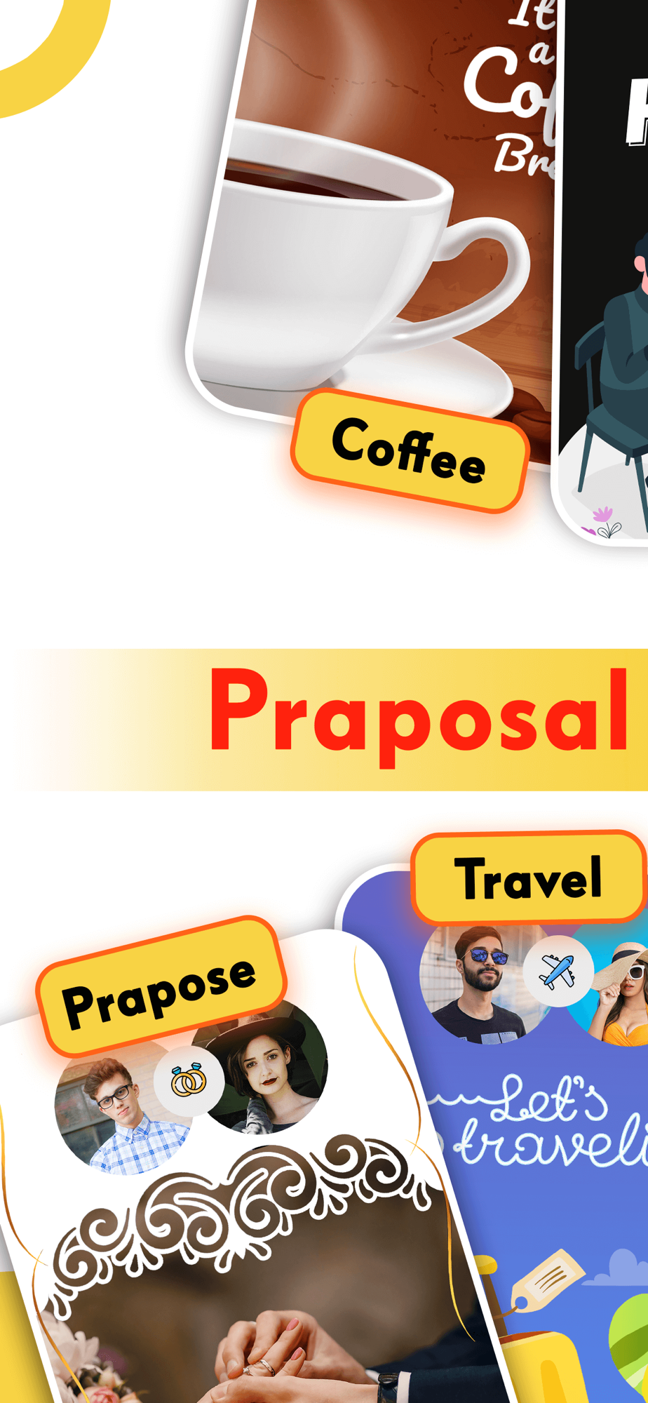 Proposal card - Flirt and impress to other by sending decorative proposal card with photo. Different type of card categories available like Coffee, Drink, Dinner, Rose, Love, Valentine, Travel, Movie time and Wedding.