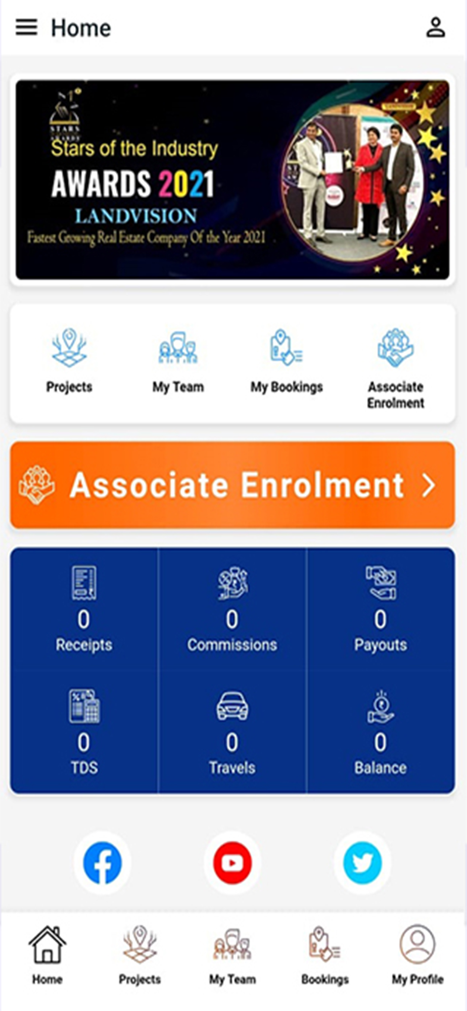 The LandVision Associate services app will help by providing a simple and easy way for associates to view projects, special offers, Downline Team, Recruitment and bookings. All your communication will be conducted within the app, which is secure and private to protect associate data