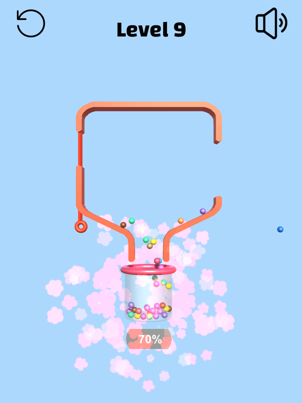 Take out the pins in order, and drop all the balls into the cups below to complete the game!