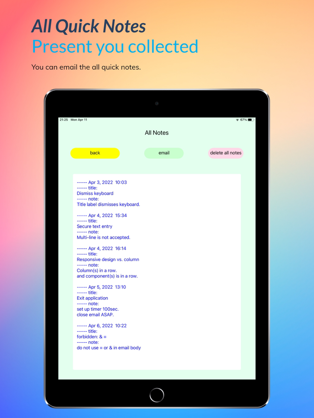 All notes page displays all data in a plain text format. Like Account info, email function is provided in All Notes page.